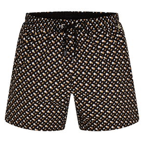 Mens BOSS Octopus Logo-print swim shorts with full lining in light beige Sporty swim shorts by BOSS. Crafted in recycled material with full lining and quick-dry performance this pair is printed with a large logo.