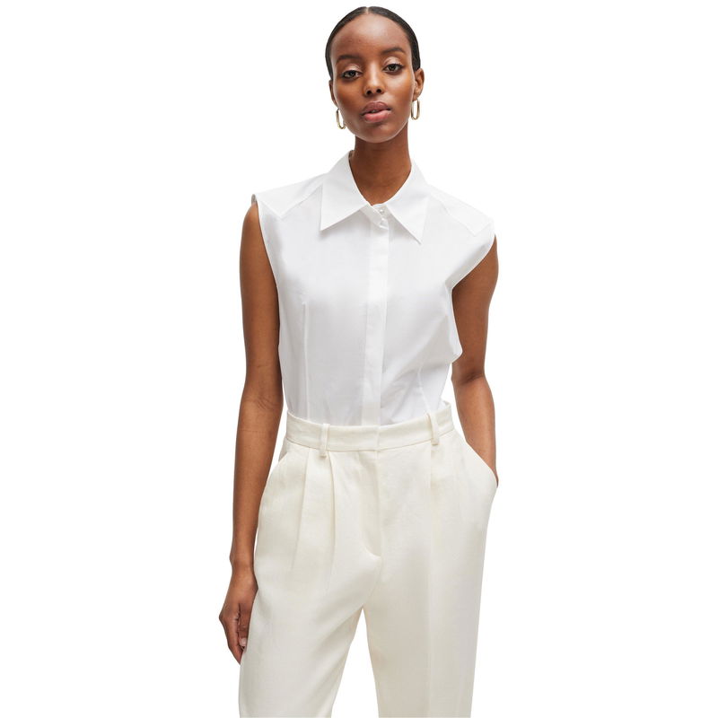 The BOSS Women's Banoh Long-Sleeve Blouse features precision tailoring with fluid drape, delivering a graceful presence with fashion appeal.