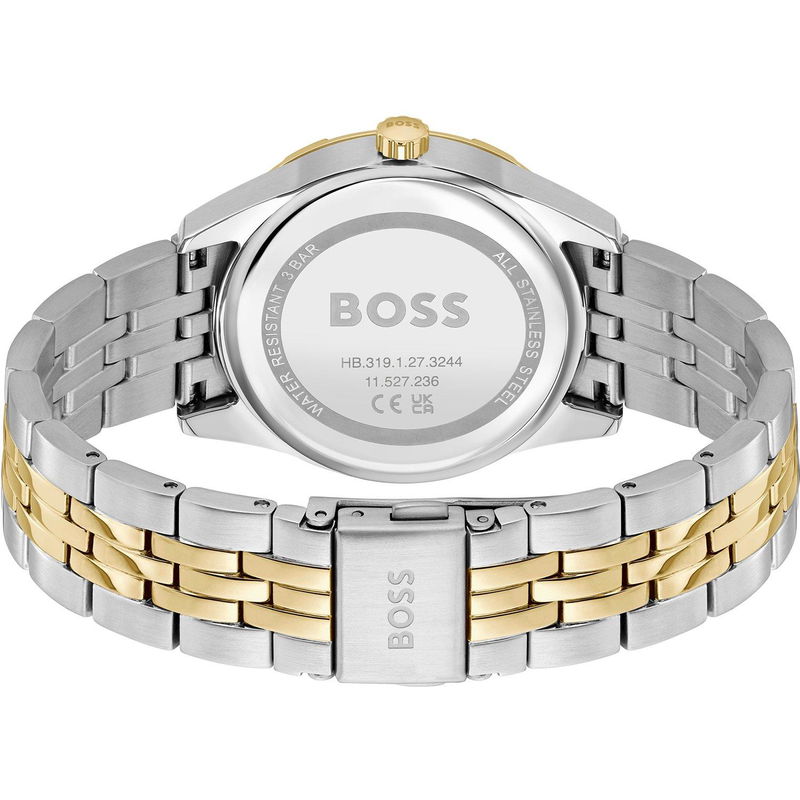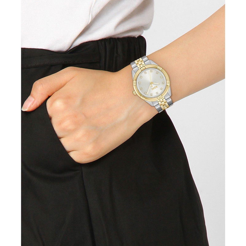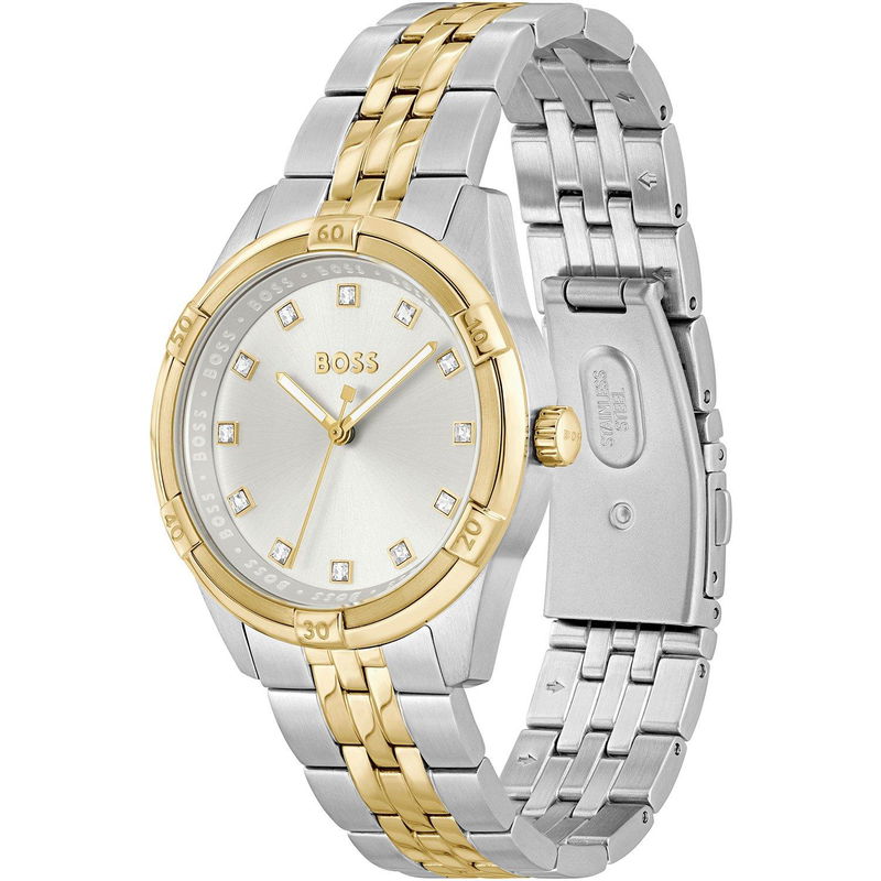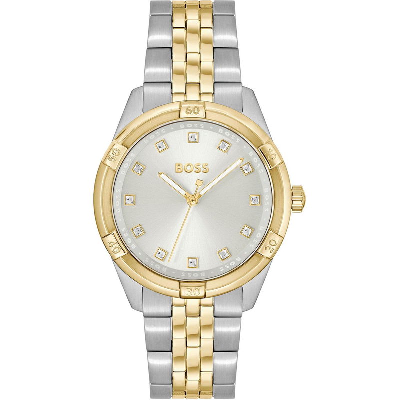 Sleek, the BOSS Rhea watch features classic design with modern style. The 36 mm case pairs perfectly with a two-toned bracelet, creating an adaptable accessory that transitions easily from day to evening wear.