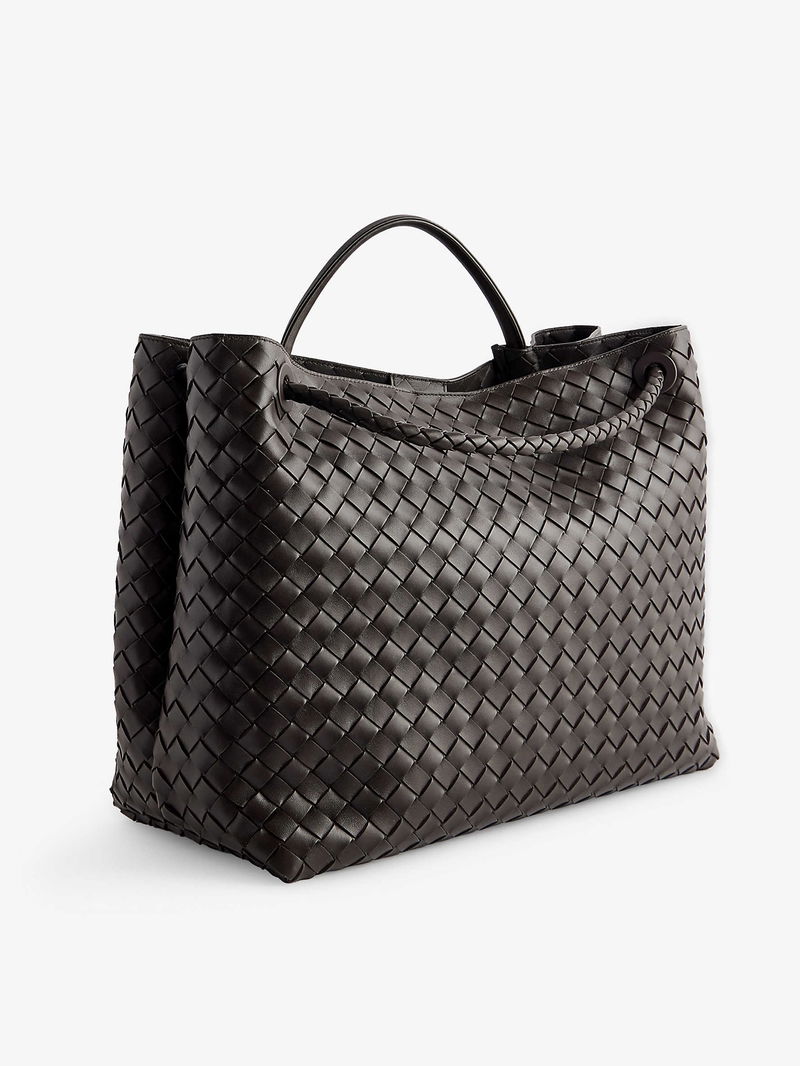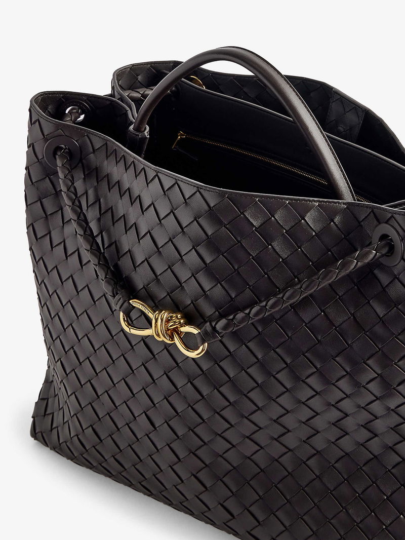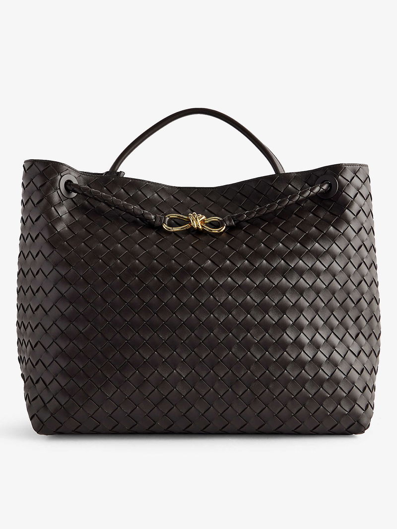 Bottega Veneta cross-body bag. Magnetic closure. Top-handle, adjustable cross-body strap, knotted clasp at front, all-over mini double-faced weave, one main compartment, interior slip pockets, interior zipped pocket, lined.