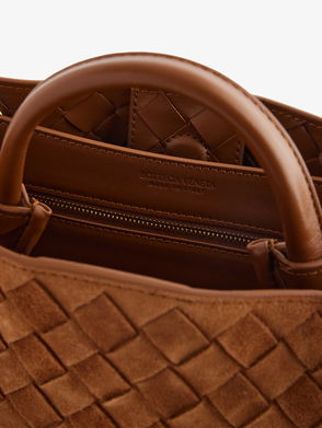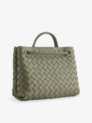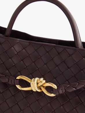 Expertly crafted from leather in the brand’s instantly recognizable Intrecciato weave, the Andiamo Small tote bag is topped with knotted golden hardware. Synonymous with Bottega Veneta since the ‘90s, knotted details represent signature house codes.