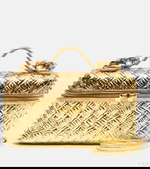 Showcasing the timeless appeal of the brand's signature intrecciato weave, Bottega Veneta's Bang Bang vanity case pairs gold-tone hardware with the iconic interwoven design.