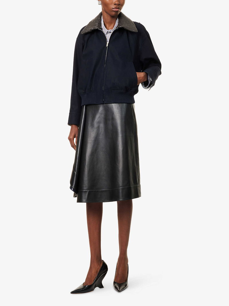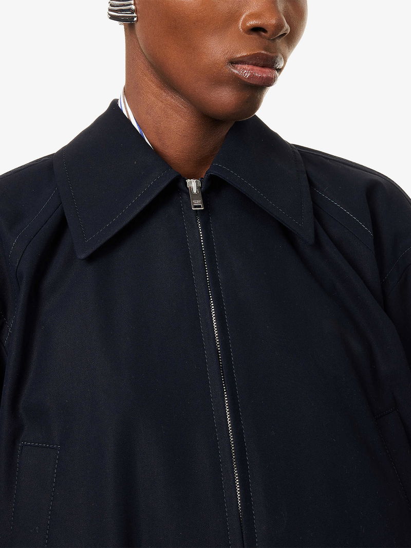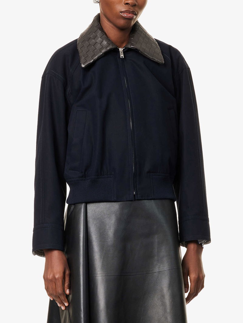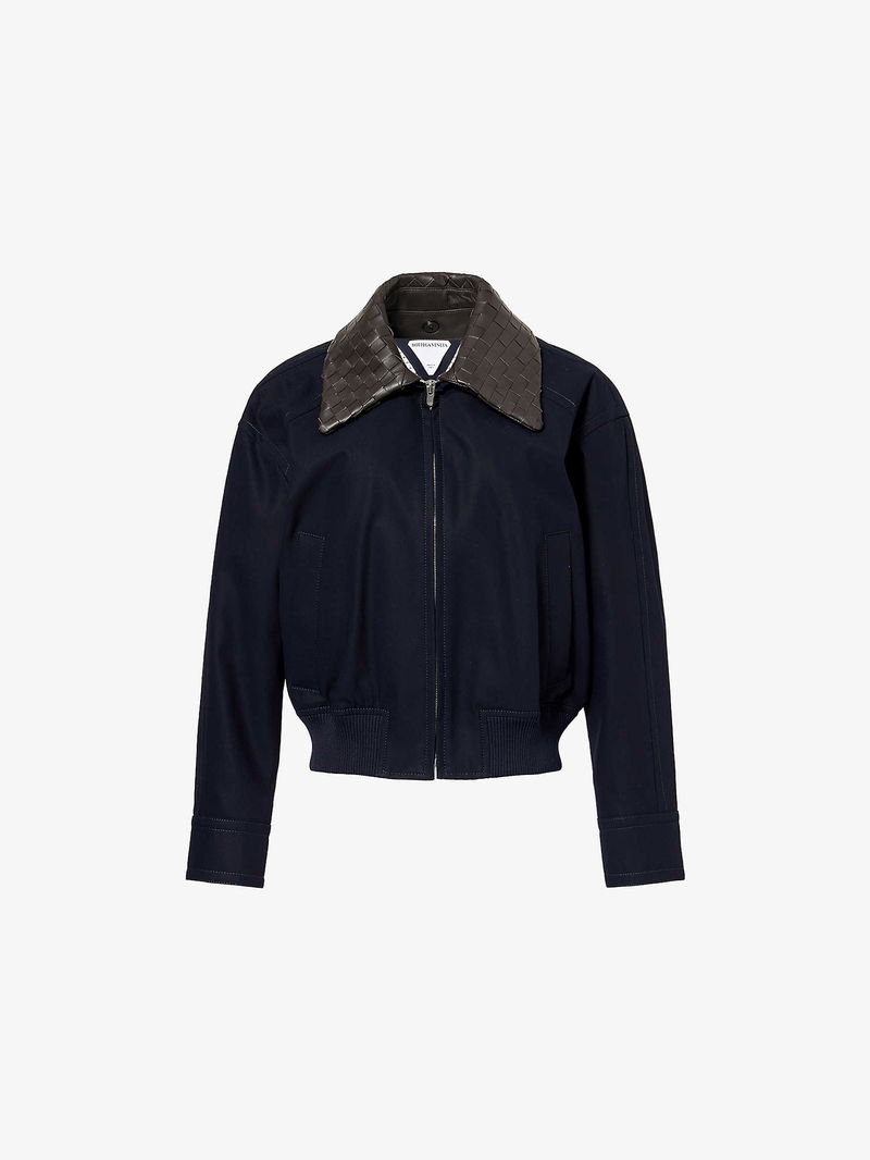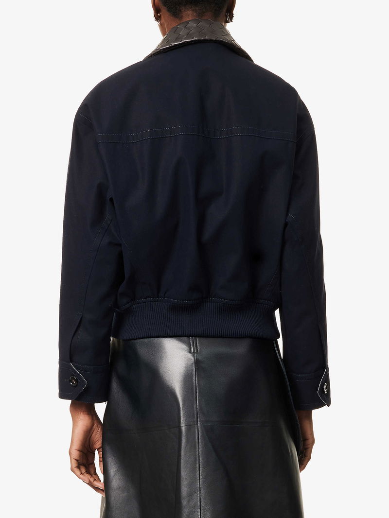 Bottega Veneta cotton jacket. Concealed zip fastening at front. Regular fit, detachable intrecciato leather collar, long sleeves, buttoned cuffs, welt pockets at front.