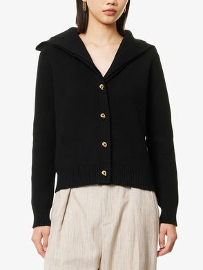 Bottega Veneta knitted cardigan. Exposed button fastening at front. Relaxed fit, round neck, long sleeves, knot-design buttons at front, all-over knitted, all-over bouclé-texture, ribbed trims.