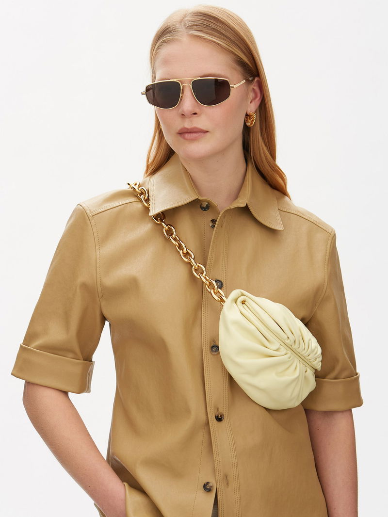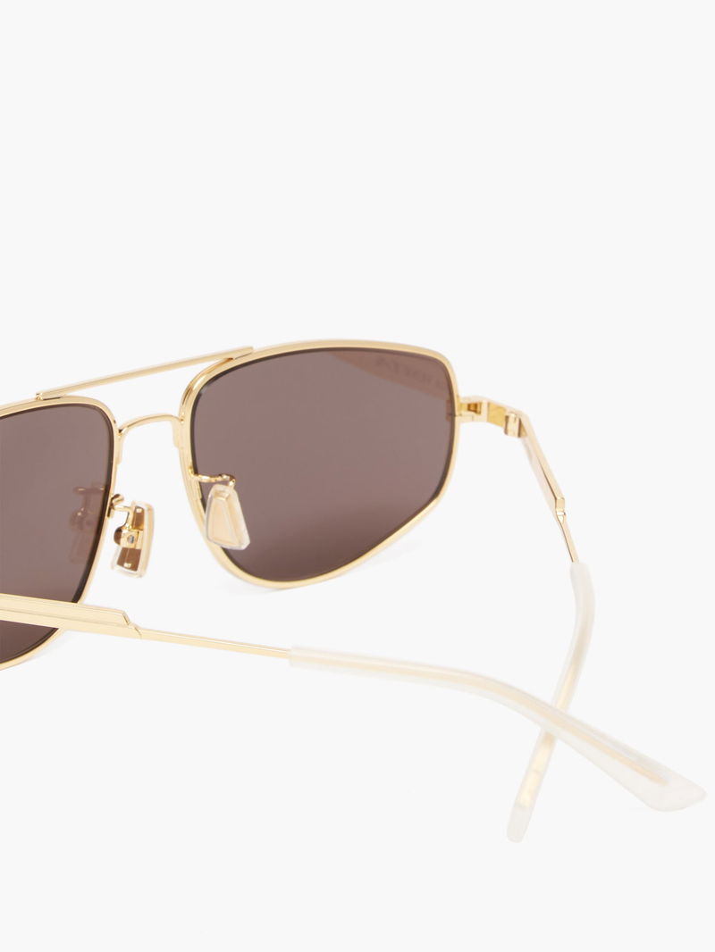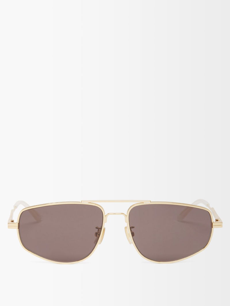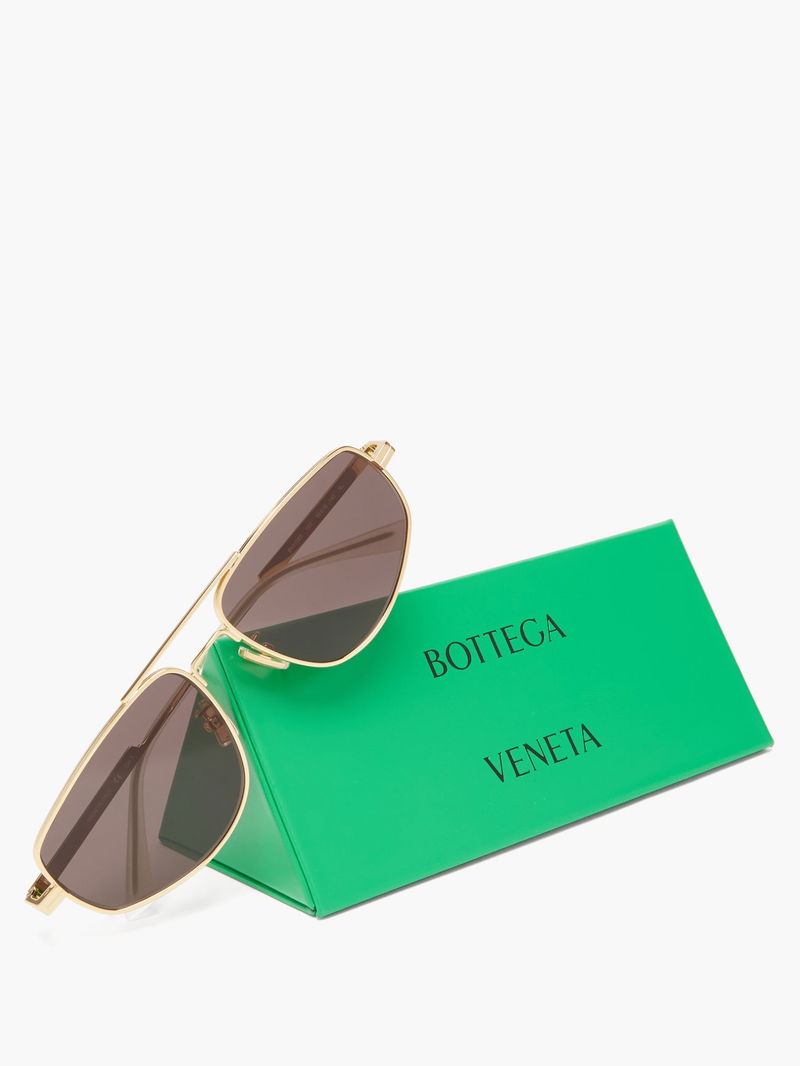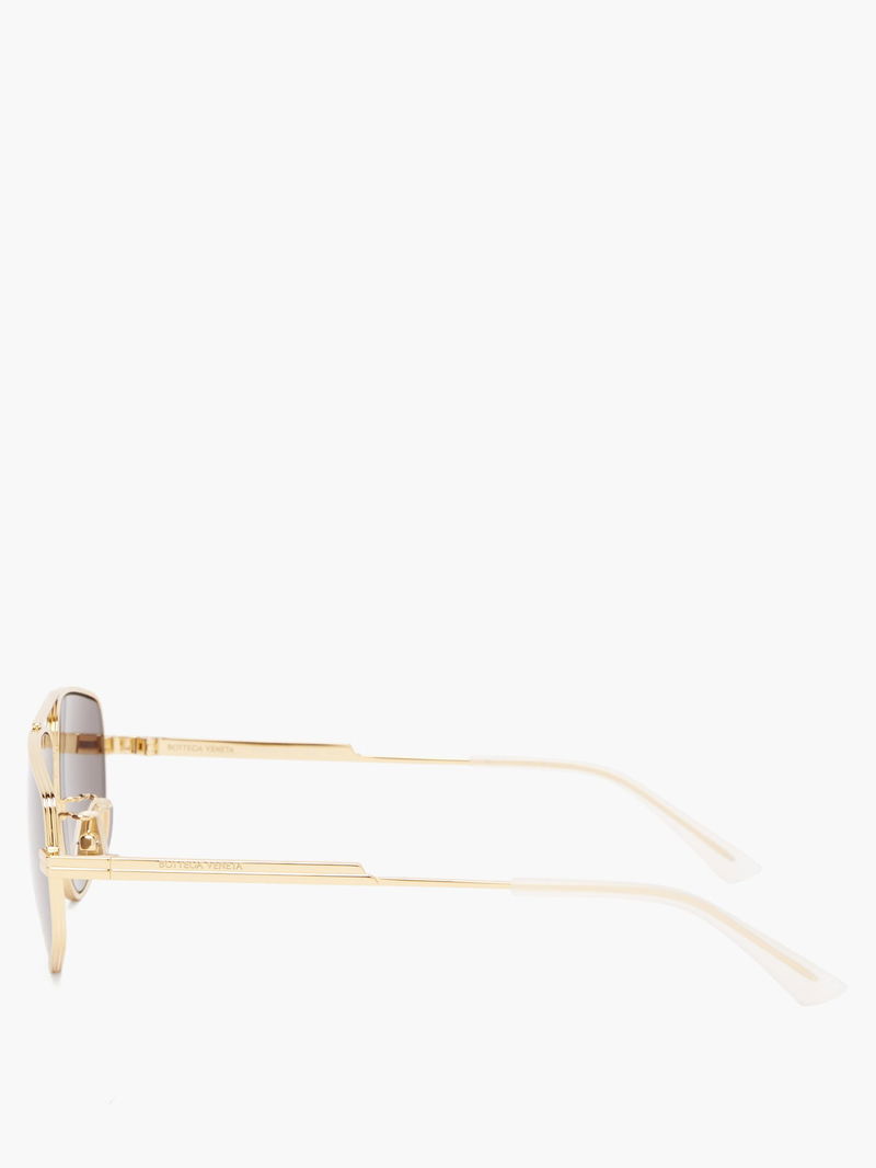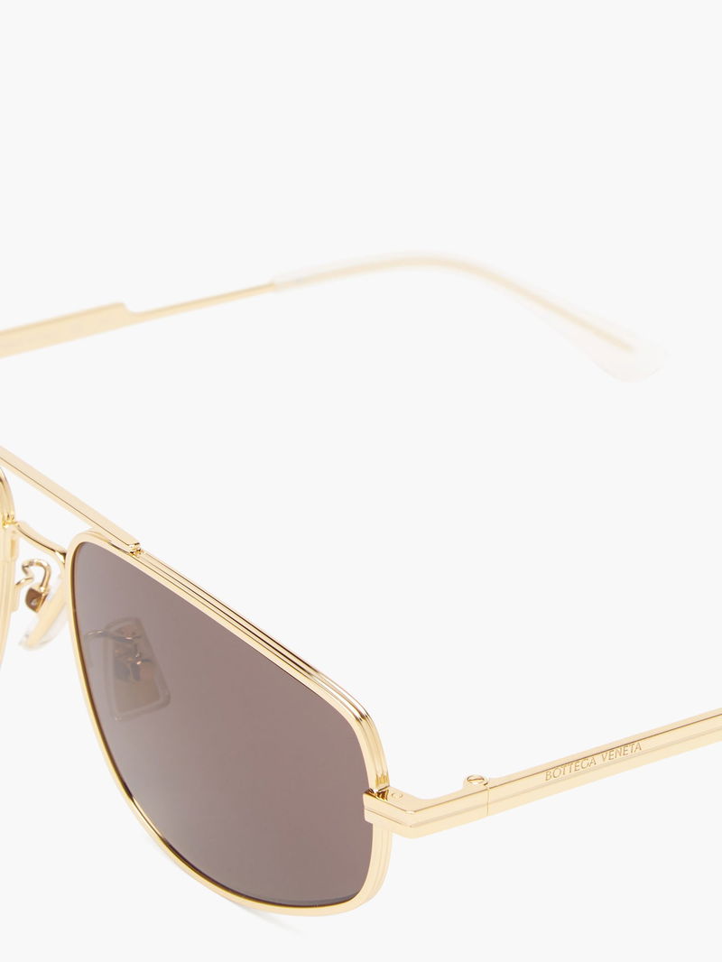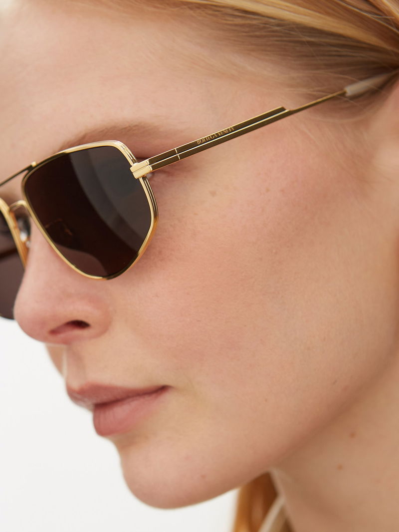 Bottega Veneta’s gold-tone metal Classic sunglasses are made in Italy to an aviator shape with grey tinted lenses and logo engraving at the angular temples.