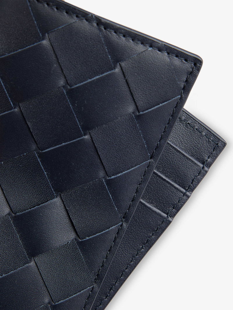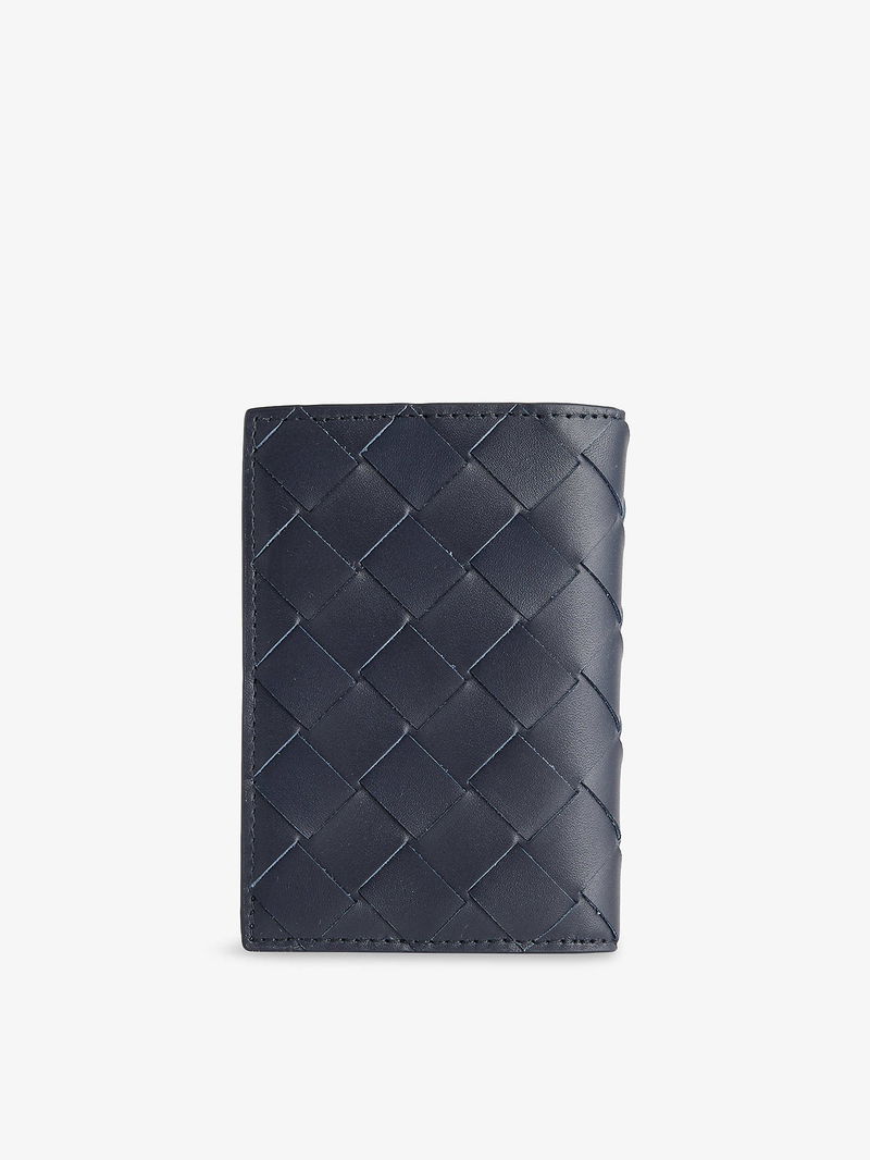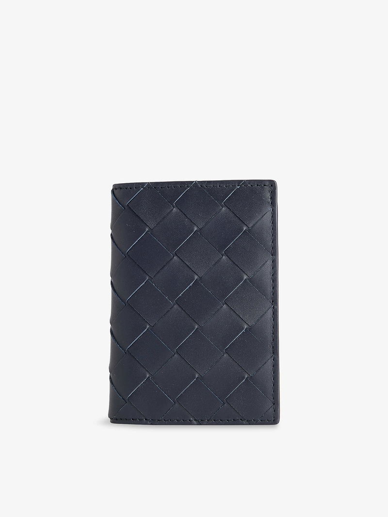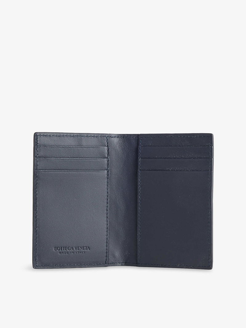 Bottega Veneta leather wallet. Six card slots, logo engraved, intrecciato weave, central currency compartment