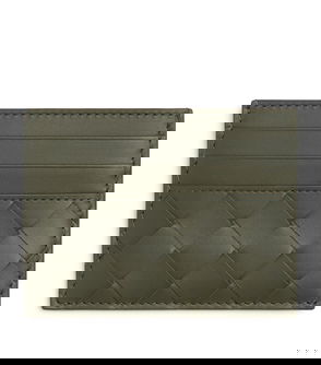Bottega Veneta leather card holder. Rectangular shape, all over double-faced weave, striped at front and back, three card slots at front and back, central slip pocket, fully lined.