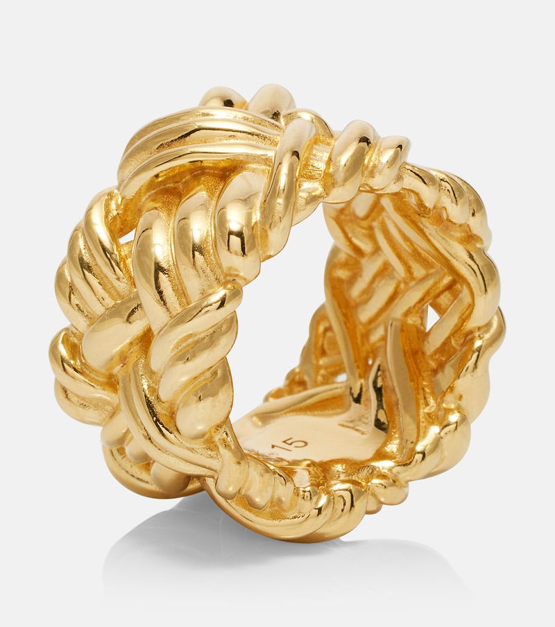 This Bottega Veneta ring is crafted from hand-polished 18k gold-plated sterling silver and brings a refined, shiny addition to every ensemble. This jewel is finished using the Intreccio technique, creating a classic grid pattern.