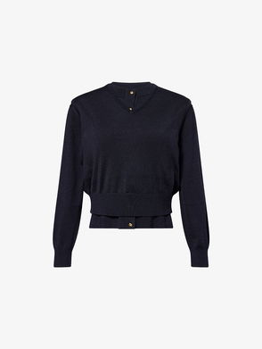 Bottega Veneta's beginnings may reside in crafting fine leather goods, but the label's expertise extends far beyond. Just take this jumper, for instance. Plucked from the brand's AW23 line-up, this toasty style is shaped into a round-neck, nonchalantly slouchy silhouette that simply skims over your frame. Laced with ribbed trims from head to hem, it's topped with gleaming knotted buttons at the sides – a testament to the maison's keen eye for detail.