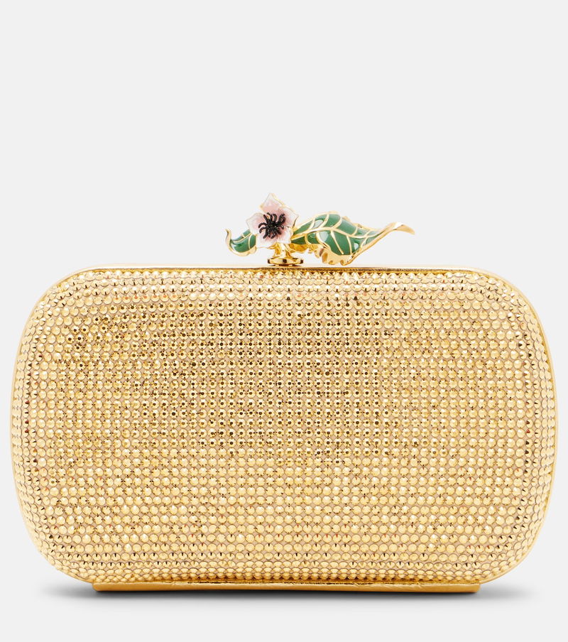 Embrace everlasting glamour with this design from Bottega Veneta. Made in Italy from suede, the Knot Mini clutch features crystal embellishments and a flower-shaped metal clasp.