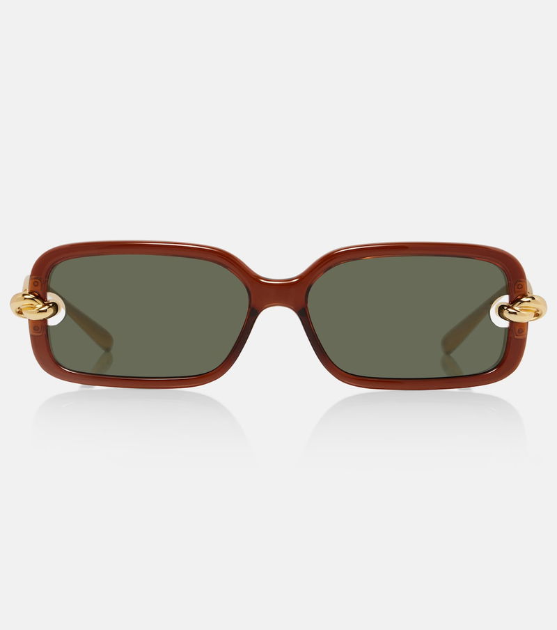 Bottega Veneta has been inspiring individuality with innovative craftsmanship since 1966. These modern sunglasses feature an acetate frame, a rectangular shape, and gold-toned Knot hardware at the temples.