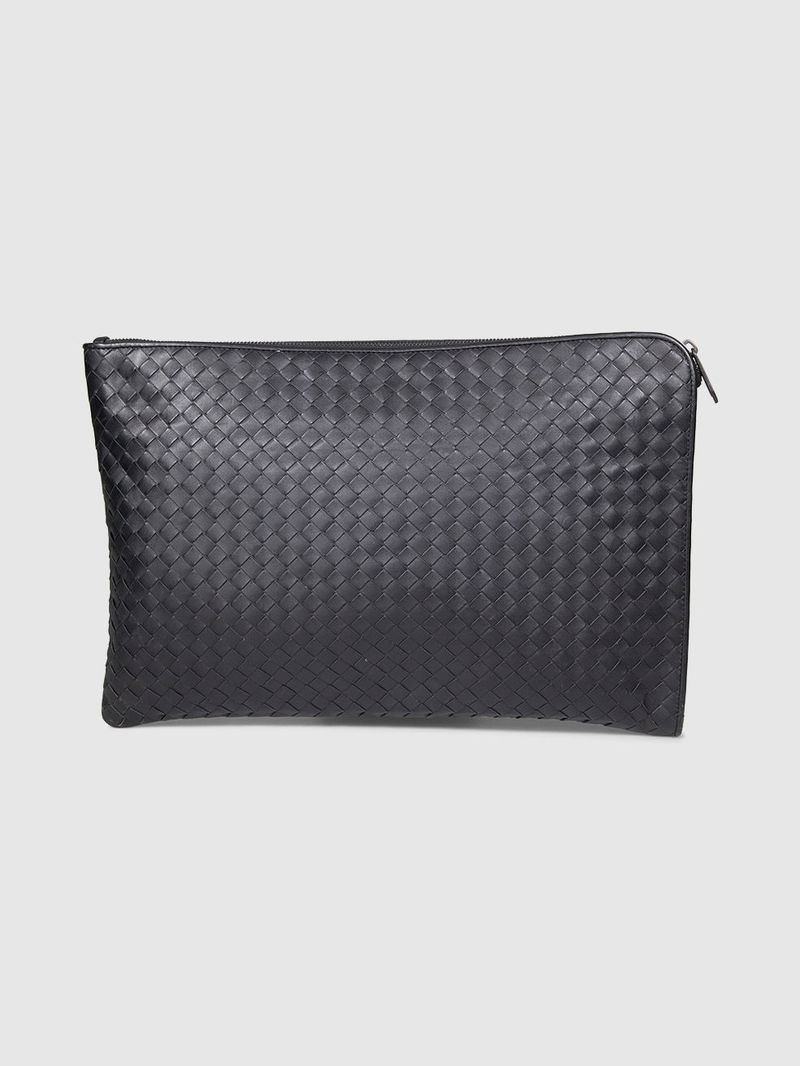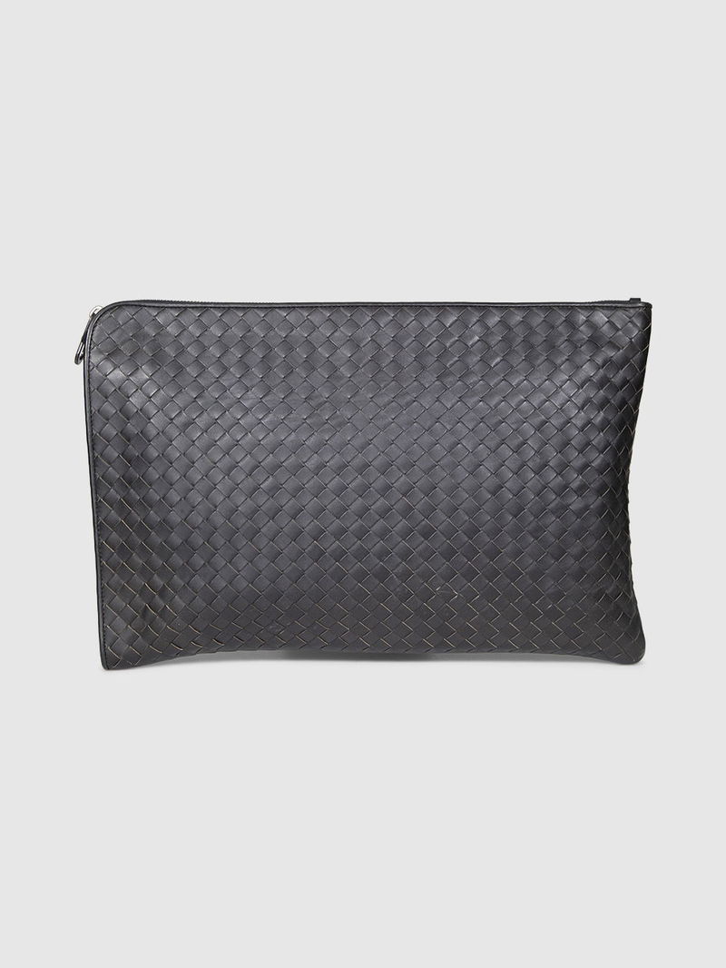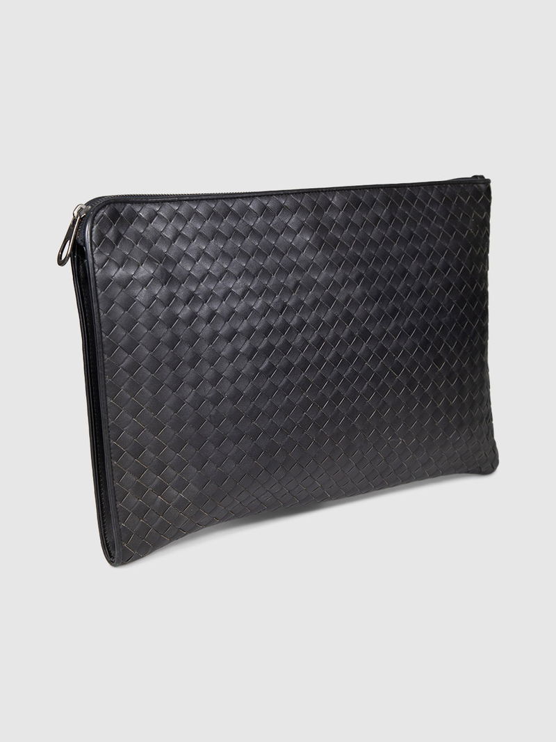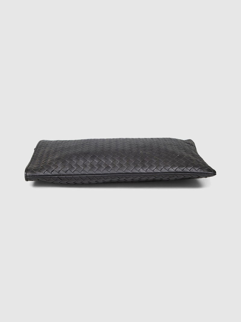 Black intrecciato leather clutch bag in excellent, pre-worn condition. See images for signs of wear.