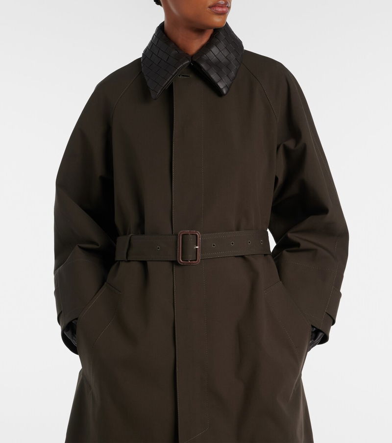 Leather-trimmed Trench Coat