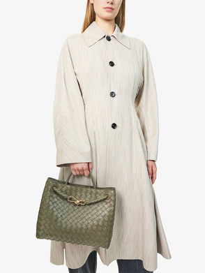First developed in the 1970s for softer leathers, the Intrecciato technique has since become a signature design element for Bottega Veneta. The enduring power of this iconic texture is fully realised in this Andiamo shoulder bag - supple calfskin is woven together, creating a motif that eschews logos for pure craftsmanship. Finished off with the House's knotted hardware, this bag is the ultimate manifesto of assiduous artistry.