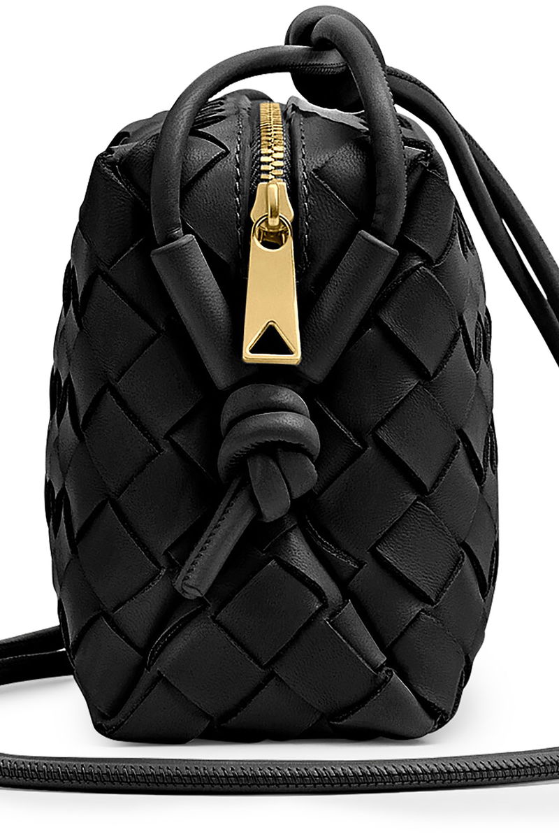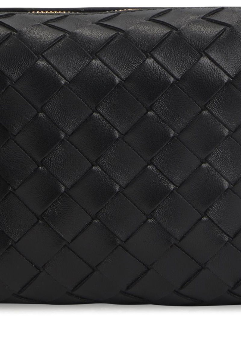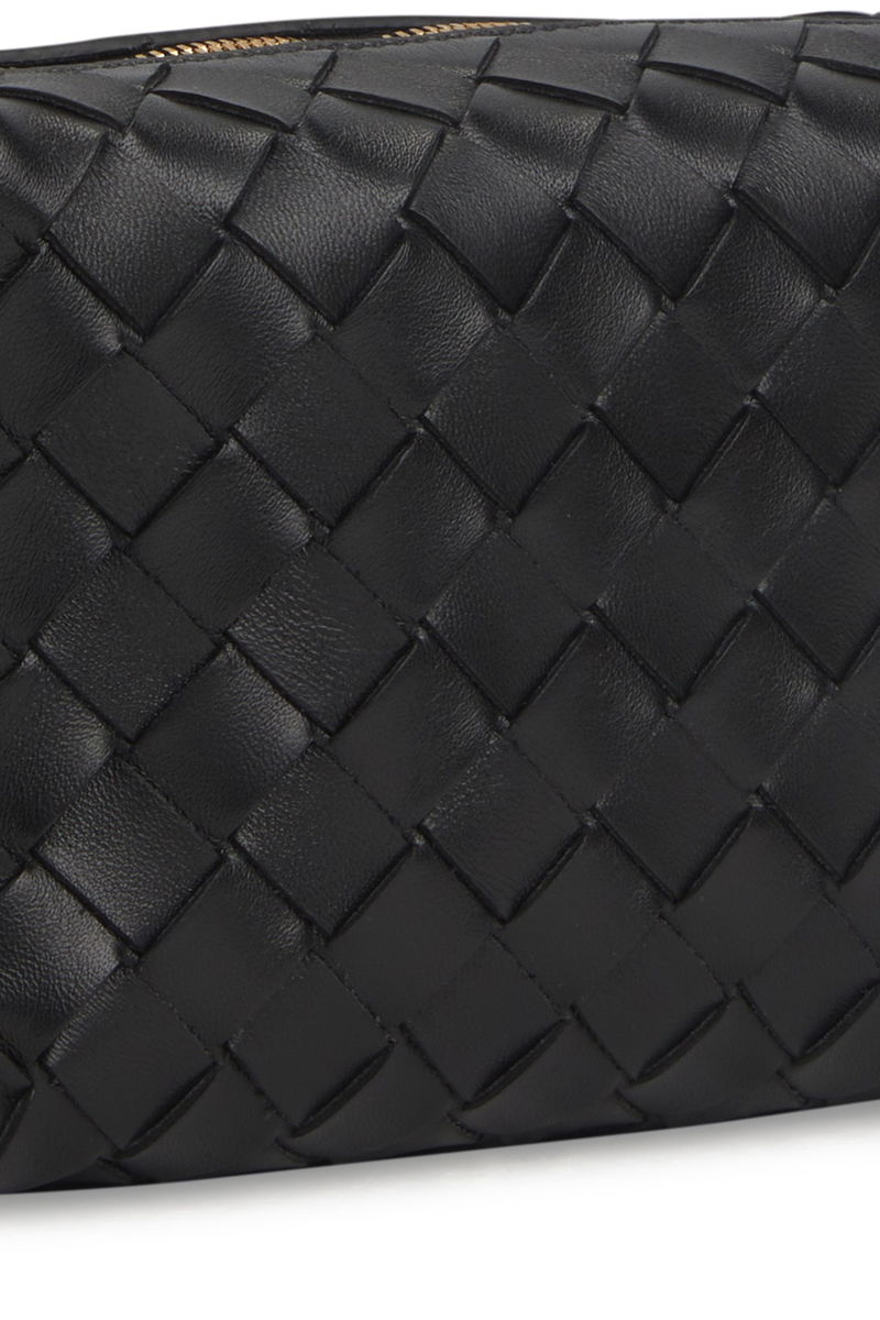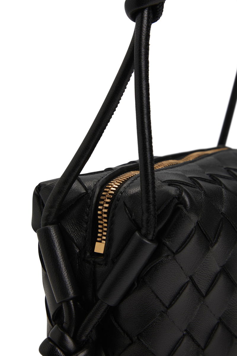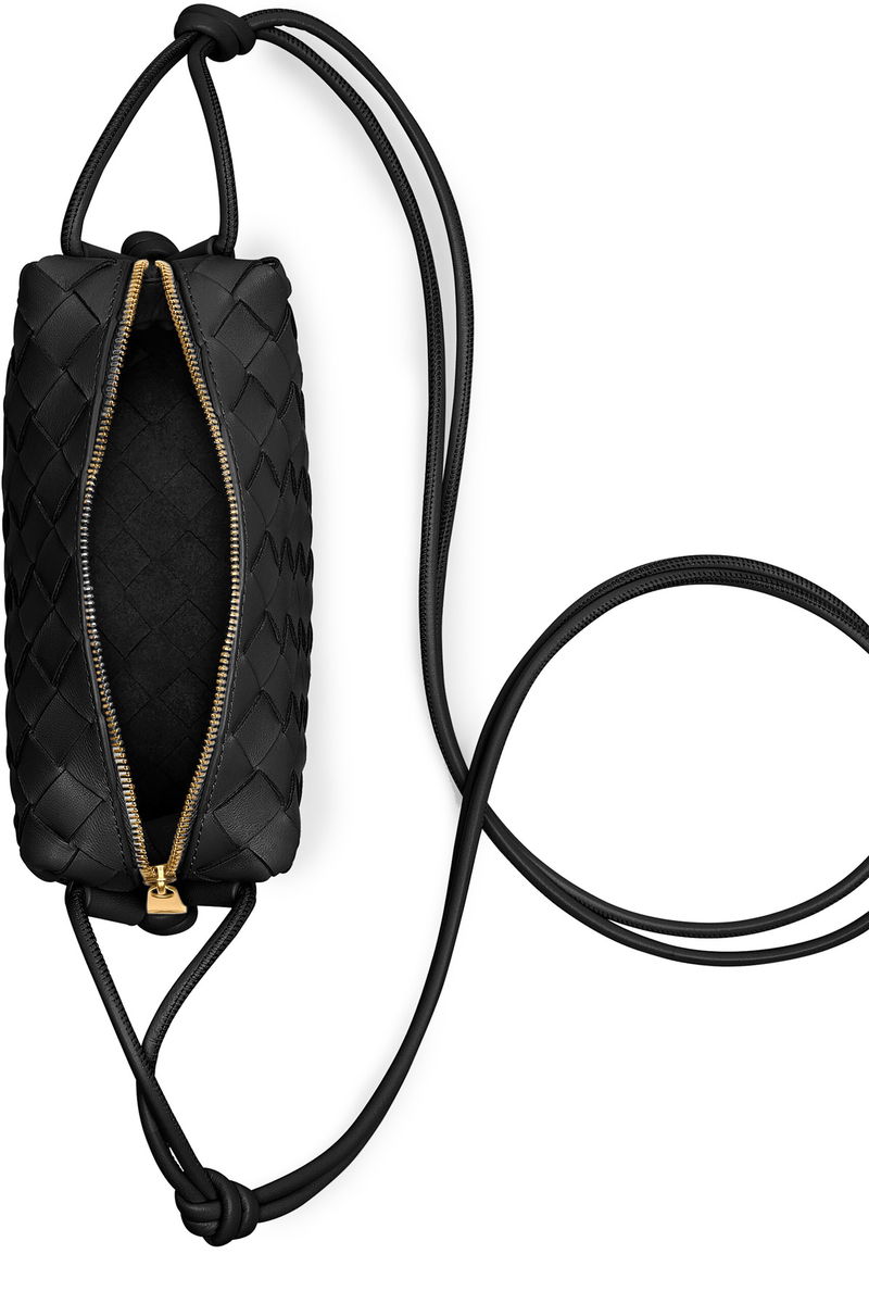 Single compartment. Zip closure. Worn on the shoulder or crossbody. Signature orthogonal weaving.