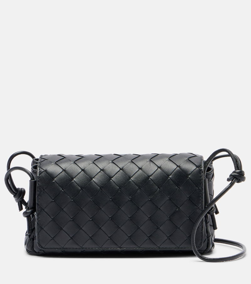 The Notturno crossbody bag is crafted using Bottega Veneta's signature Intreccio technique, where strips of double-sided leather are woven into a classic grid pattern. The piece is complete with a long strap and gold-toned hardware.