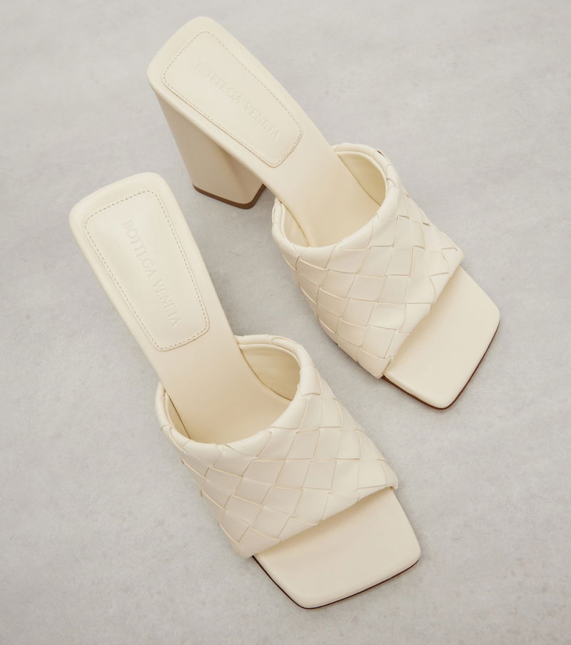 Developed in the 1970s, Bottega Veneta's artful Intrecciato technique guarantees the longevity of its leather goods. The signature weave is used to create the Parco mules, crafted in Italy from white-hued leather with 90mm block heels.