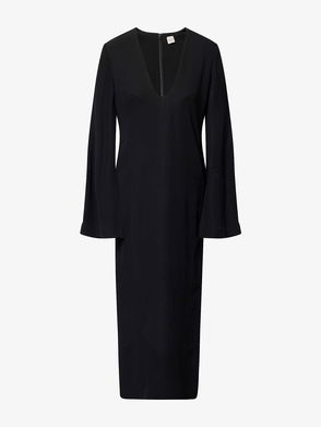 Bottega Veneta cotton-blend maxi dress. Concealed zip fastening at back Slim fit, plunge V-neck, sleeveless, panelled bodice, self-tie straps at back, flared hem.