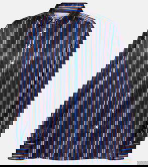 Bottega Veneta silk pyjama set. Top: slips on, round collar, long sleeves, buttoned cuffs, patch pockets at chest and front, all-over striped pattern. Bottoms: button and button-fly fastening at front, drawstring elasticated waistband, straight leg, slip pockets at side, all-over striped pattern.