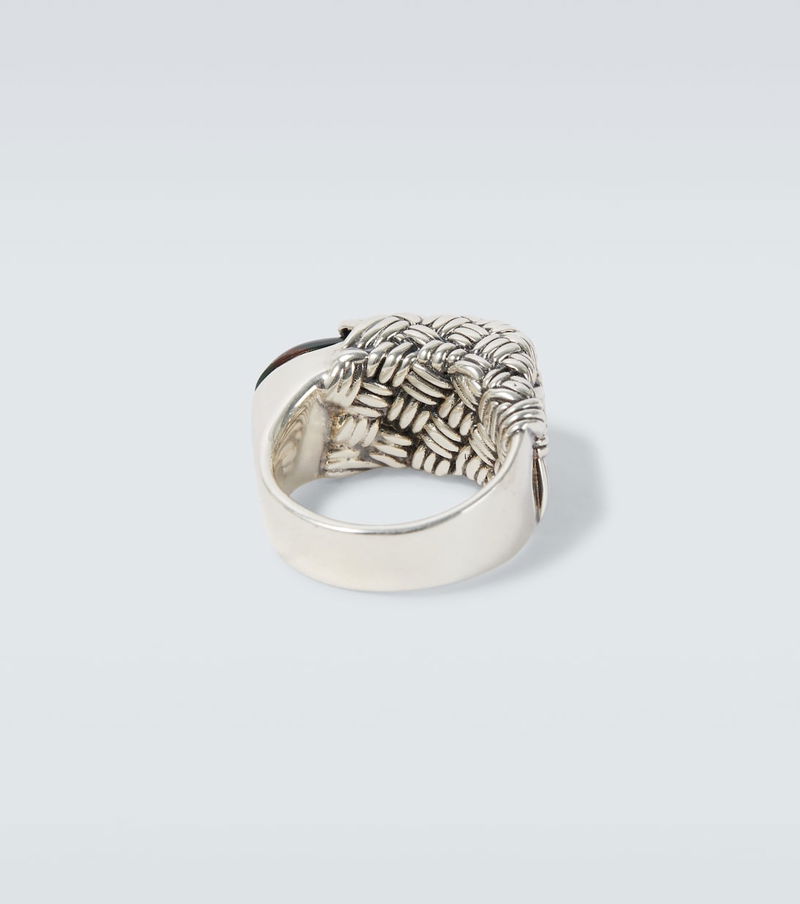 Bottega Veneta has been inspiring individuality with innovative craftsmanship since 1966. This ring is crafted from sterling silver, resembling the brand's iconic Intrecciato leather technique, and is topped with a striking gemstone.