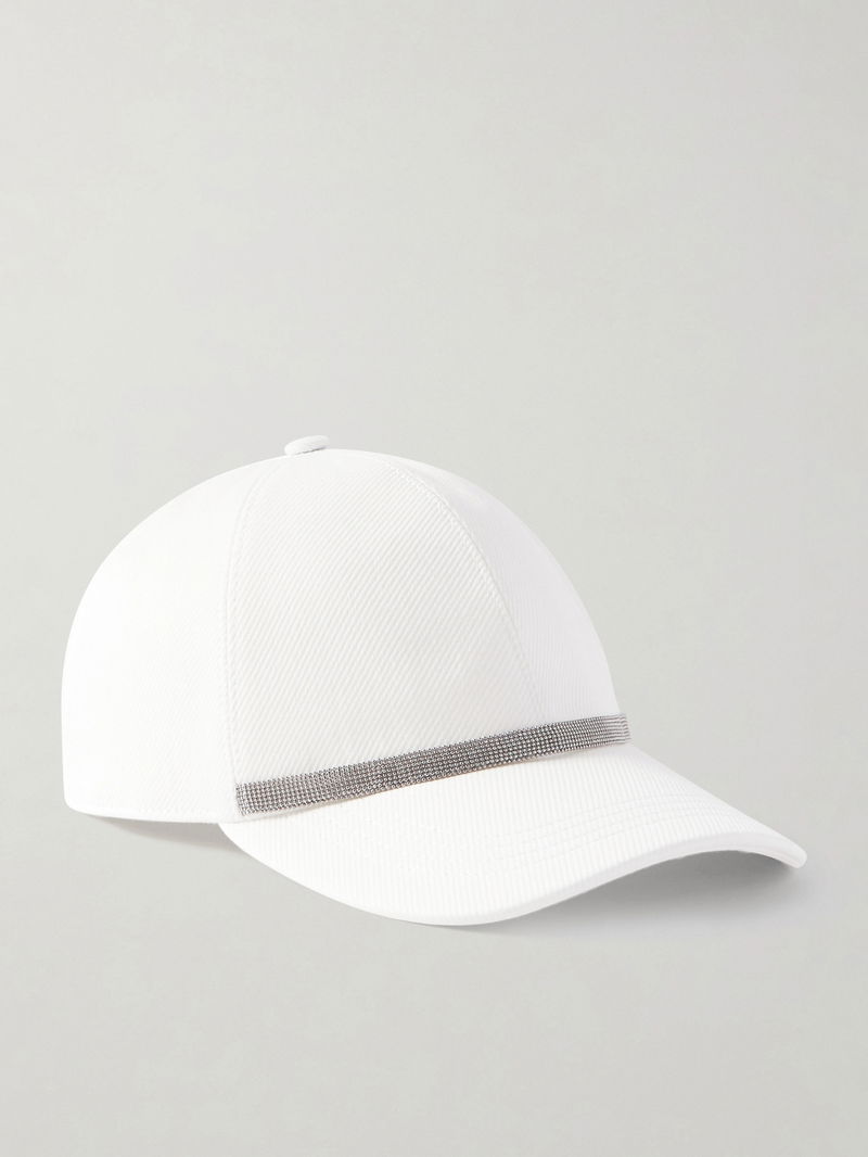 Sparkling Monili beads make Brunello Cucinelli's baseball cap feel so elevated. Made in Italy from cotton-blend twill, it has a classic five-panel construction and is embellished with the label's Monili beads.
