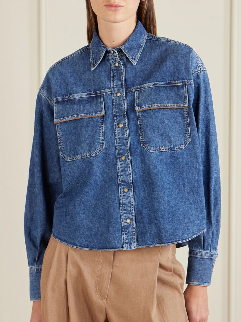 Bead-embellished Denim Shirt