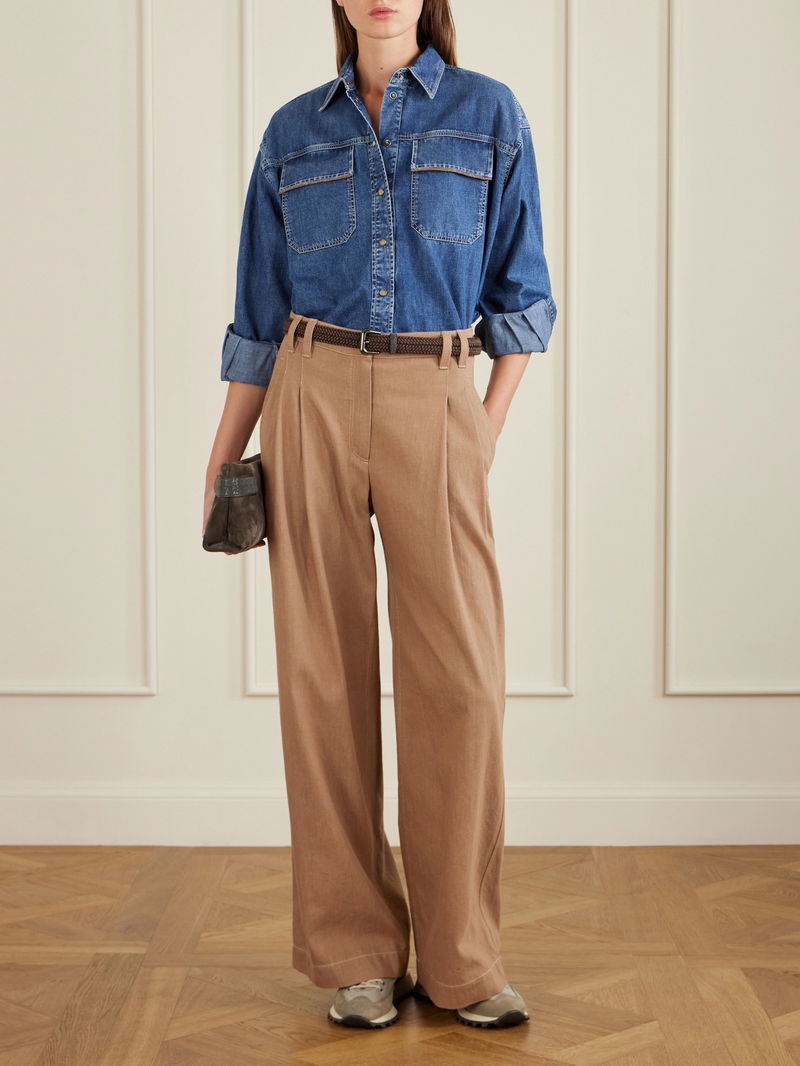 Brunello Cucinelli’s minimal basics and casual wear are elevated by luxury materials in sophisticated neutral tones and elegant details. From crisp cotton shirts, cashmere sweater dresses and leather blazers to puffer coats and suede and shearling bags, shoes and boots, pieces balance a relaxed aesthetic with a timeless quality.