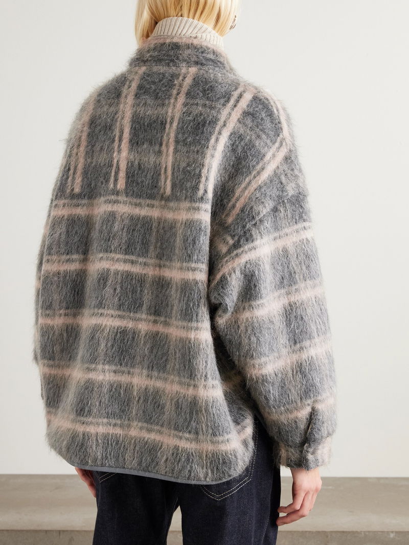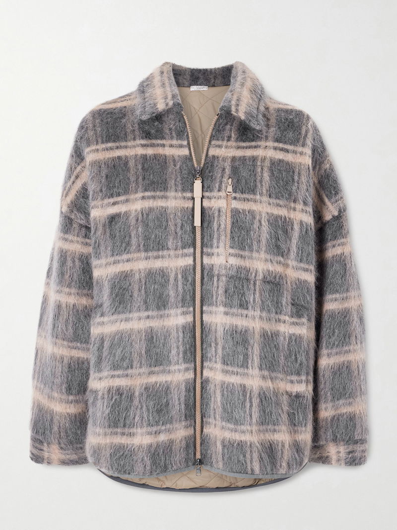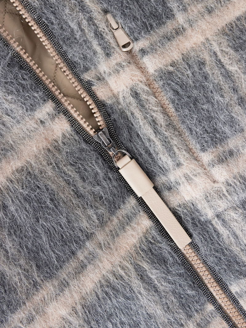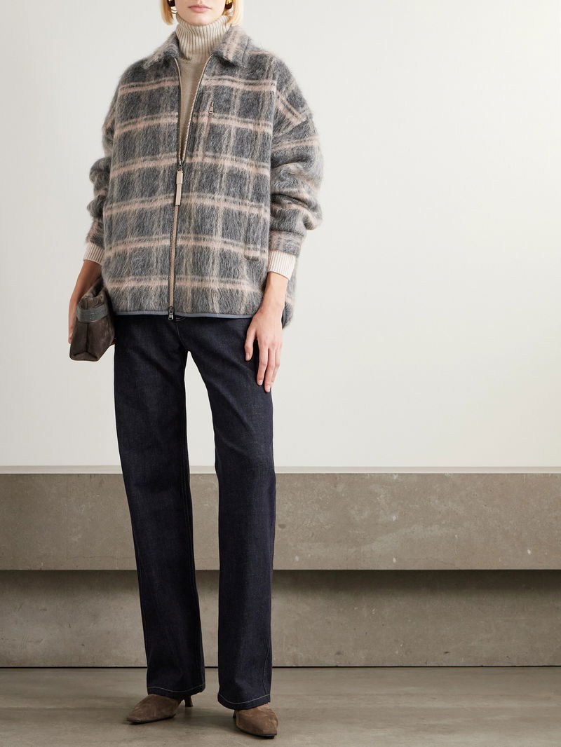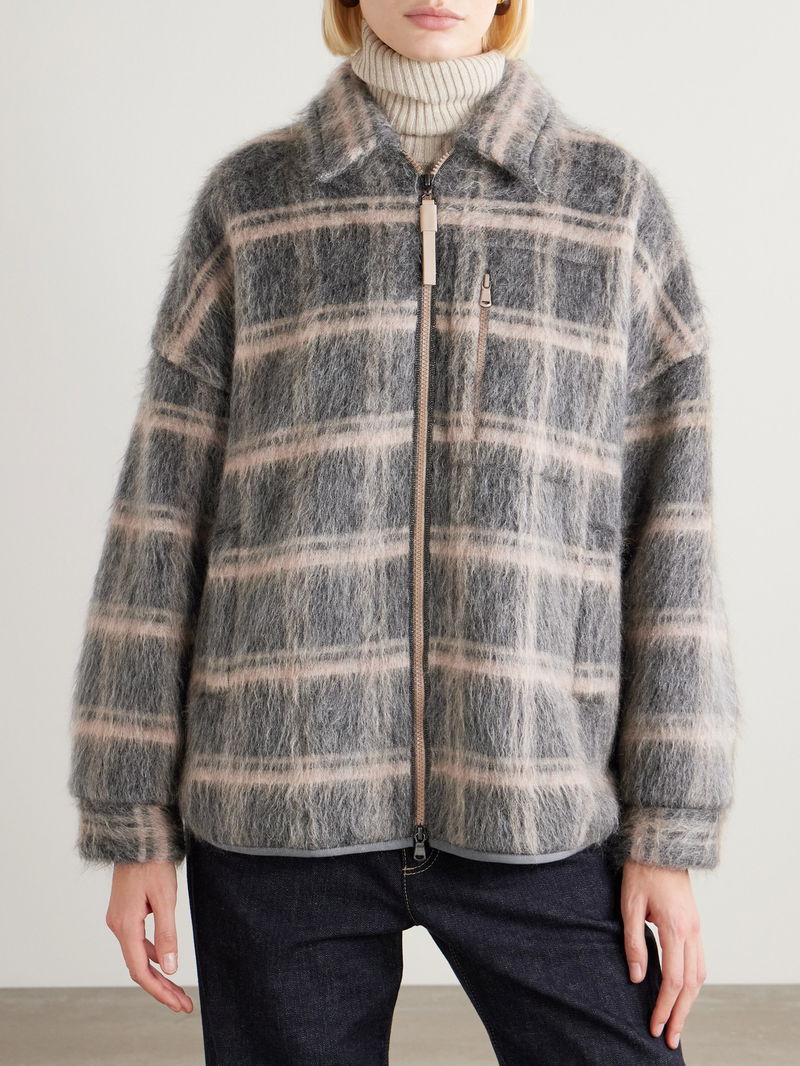 Brunello Cucinelli's checked jacket is made with touches of warm wool, mohair and cashmere and brushed for a soft, tactile handle. It's designed for a loose fit and has the signature Monili beads tracing either side of the two-way zip fastening.