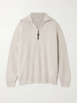 It's been made in Italy from cashmere and has a ribbed texture. The ecru shade works with everything from neutral tailoring to inky jeans.