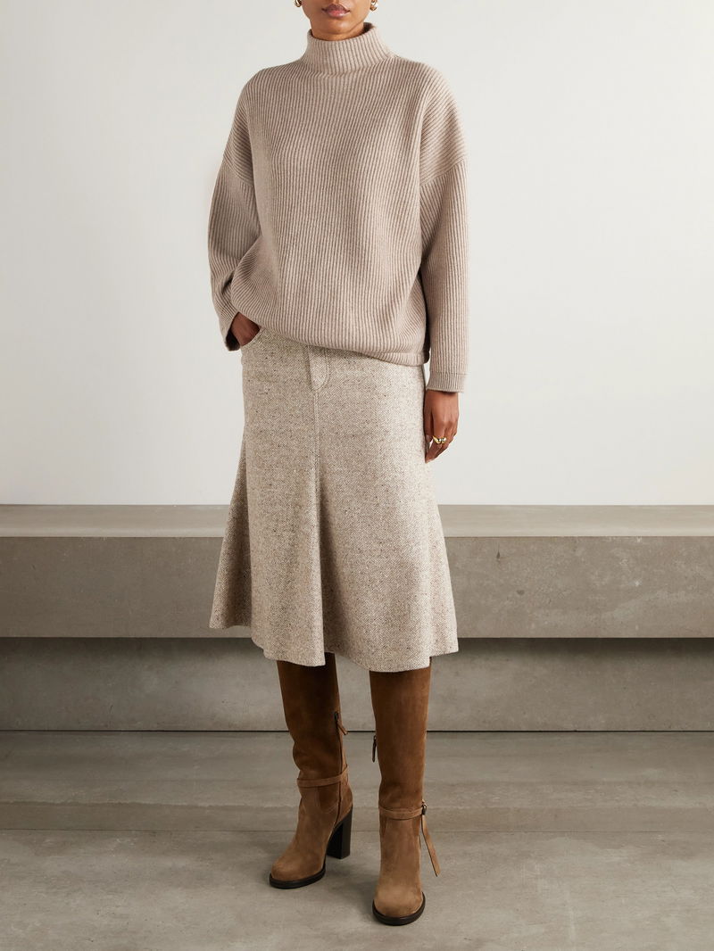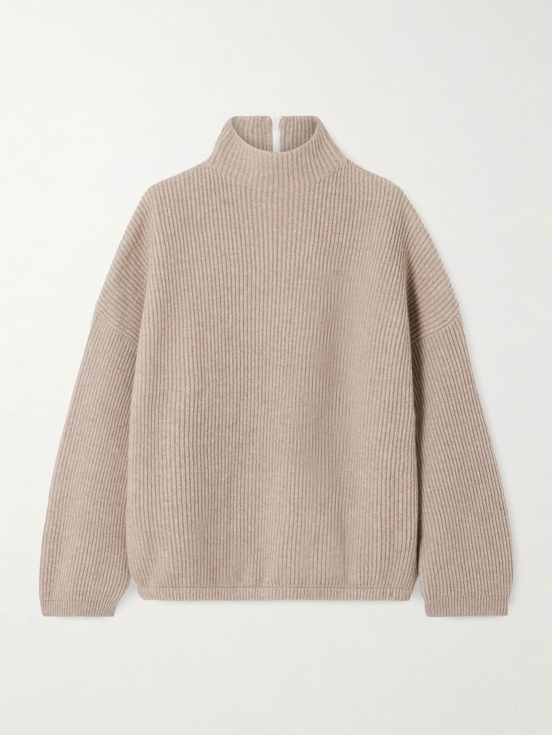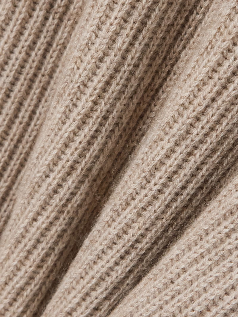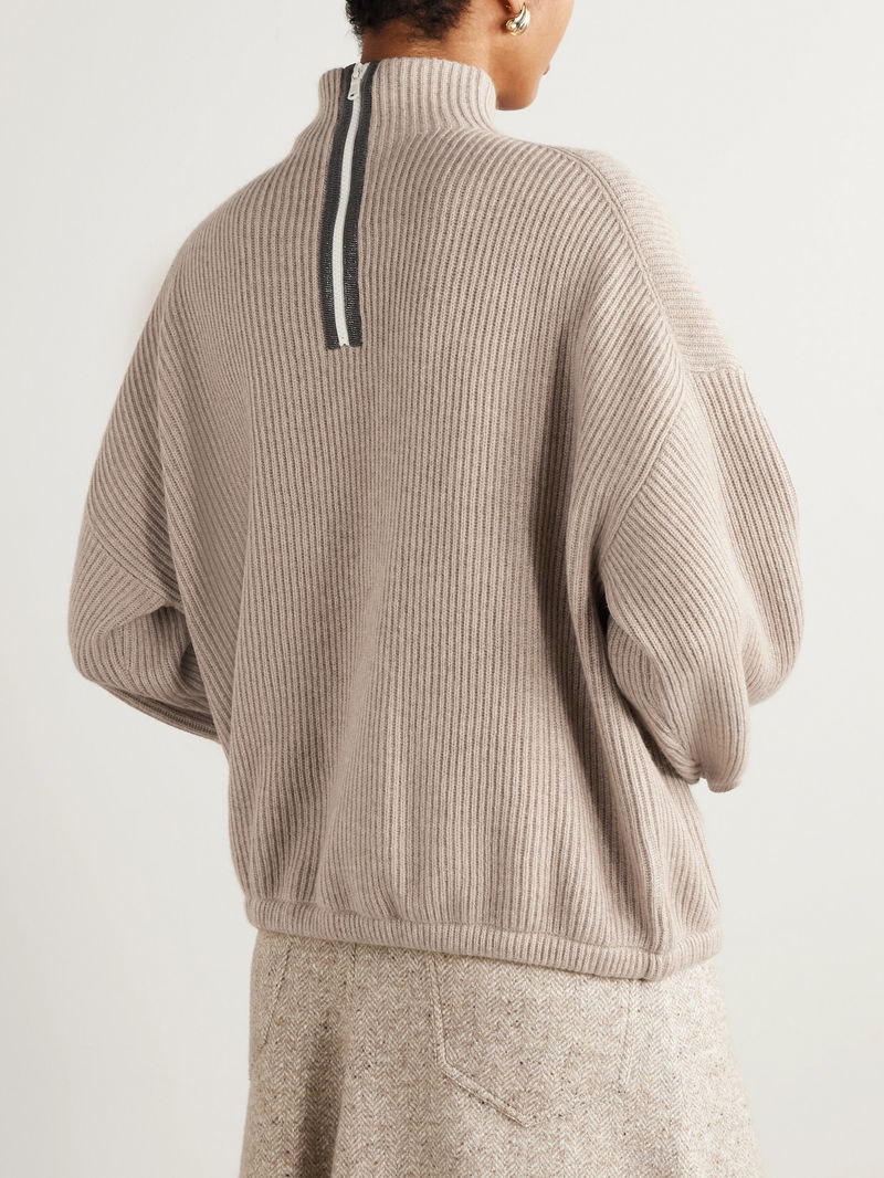 Brunello Cucinelli's sweater has been rib-knitted from irresistibly soft cashmere. It has a loose fit with a cozy turtleneck and dropped shoulder seams. The bead-embellished zip at the back lends it a sporty feel.