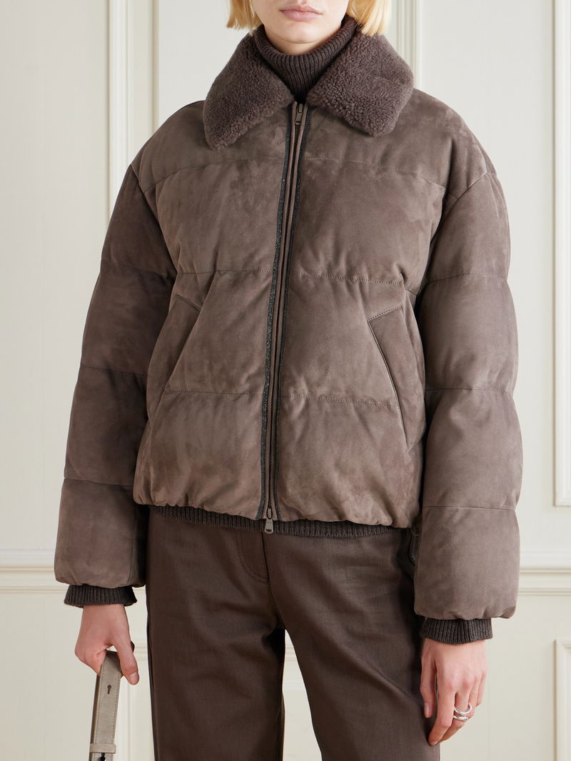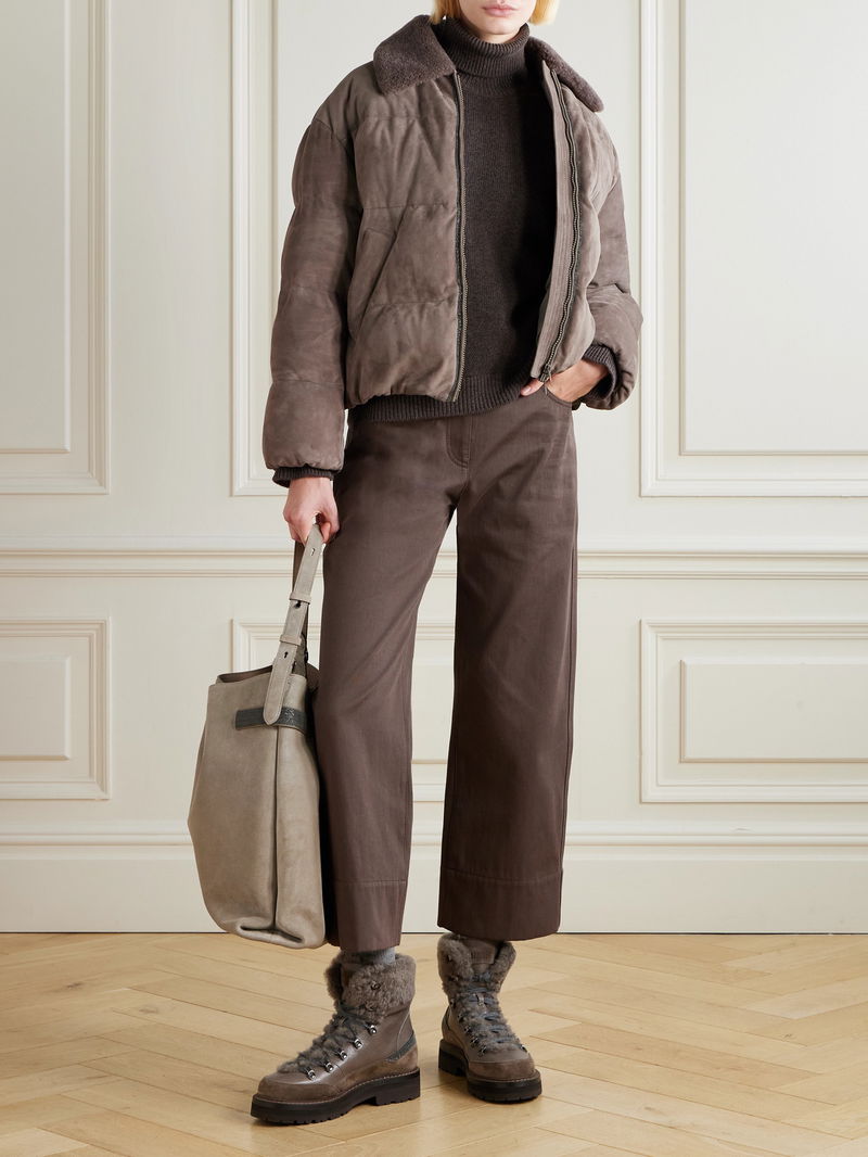 Brunello Cucinelli’s minimal basics and casual wear are elevated by luxury materials in sophisticated neutral tones and elegant details. From crisp cotton shirts, cashmere sweater dresses and leather blazers to puffer coats and suede and shearling bags, shoes and boots, pieces balance a relaxed aesthetic with a timeless quality.