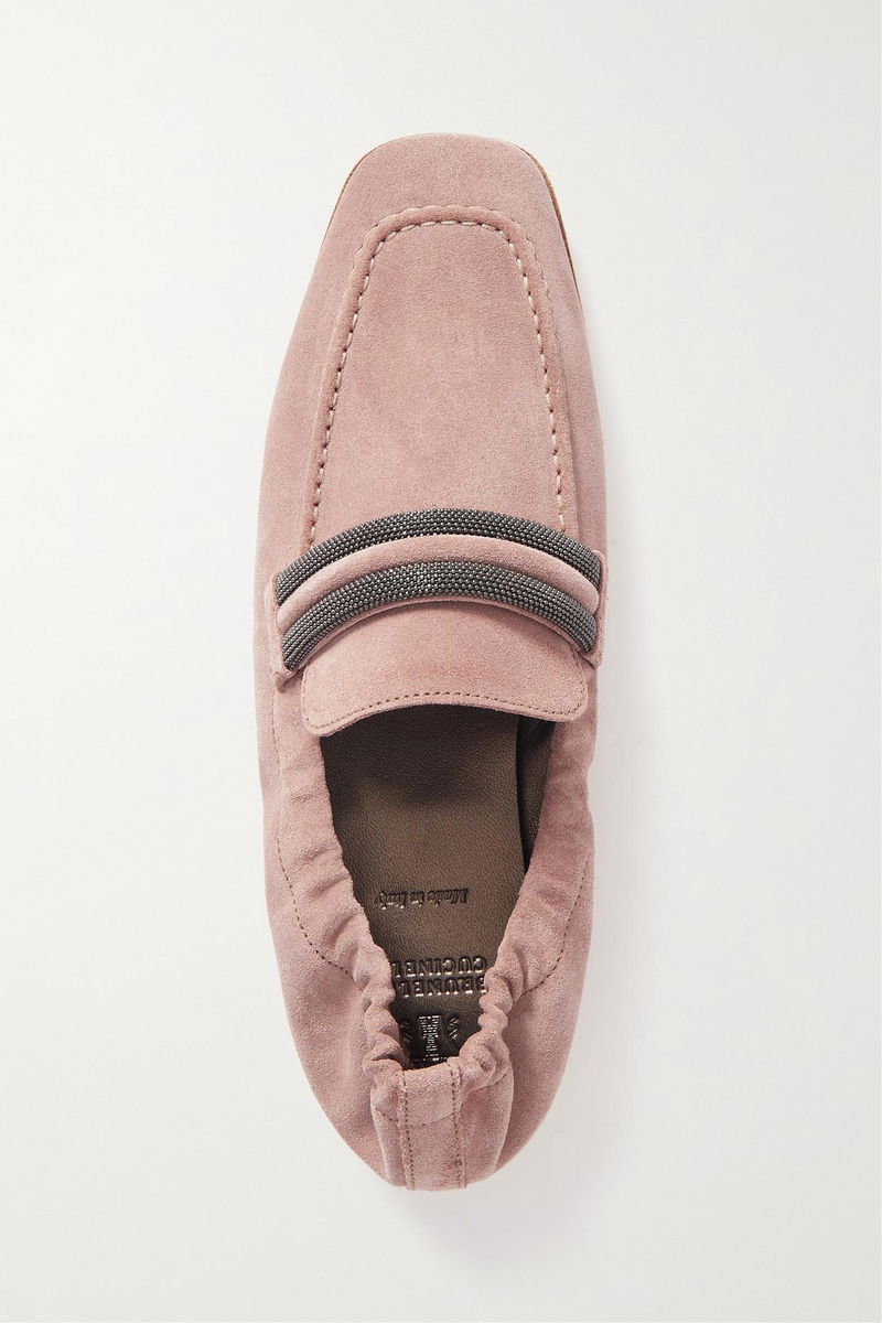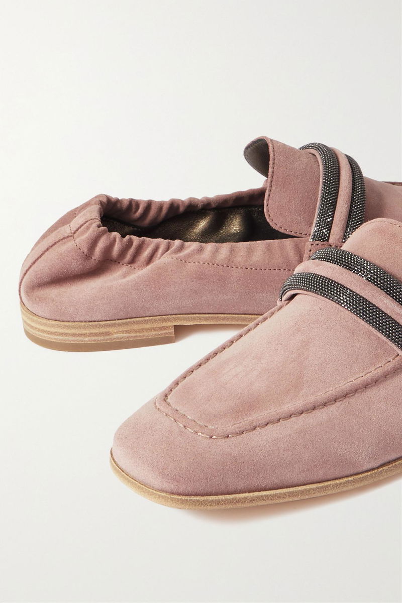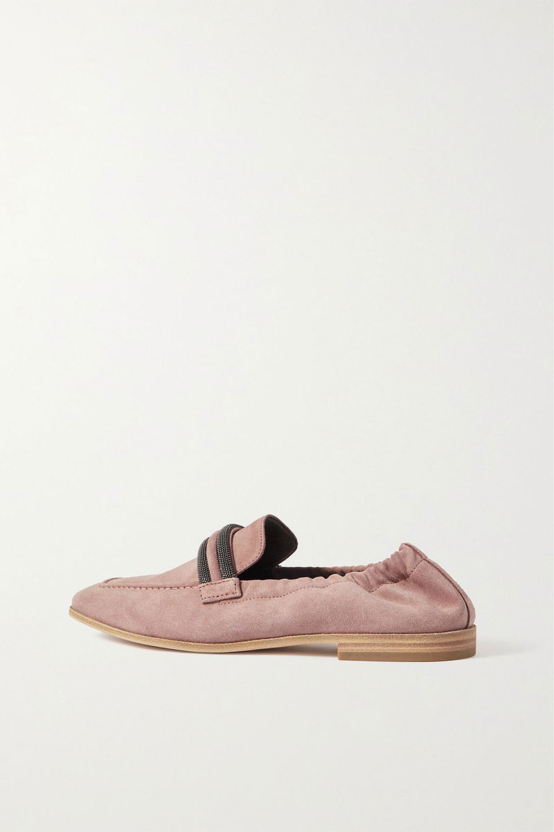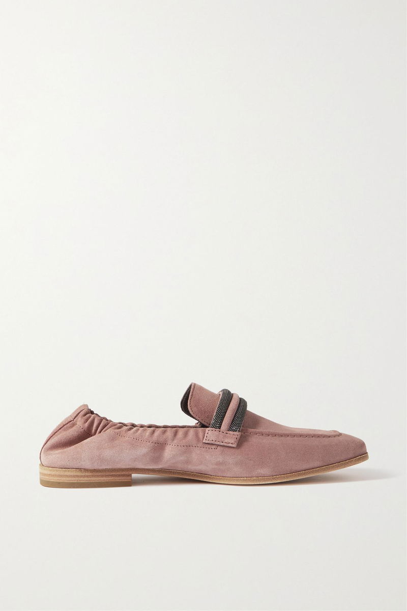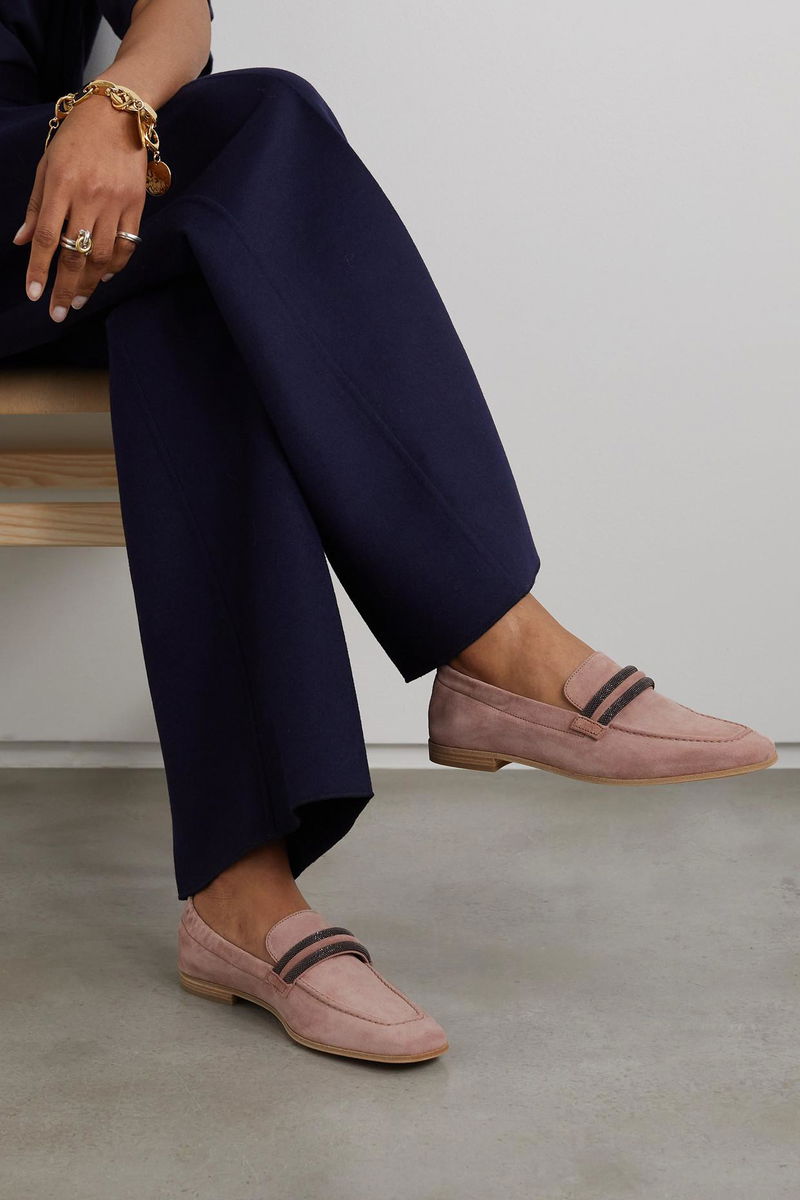 Brunello Cucinelli's loafers are such an elegant choice. They're crafted from smooth suede with elasticated edges that mold to the shape of your foot. The front is traced with gleaming stands of signature Monili beads.