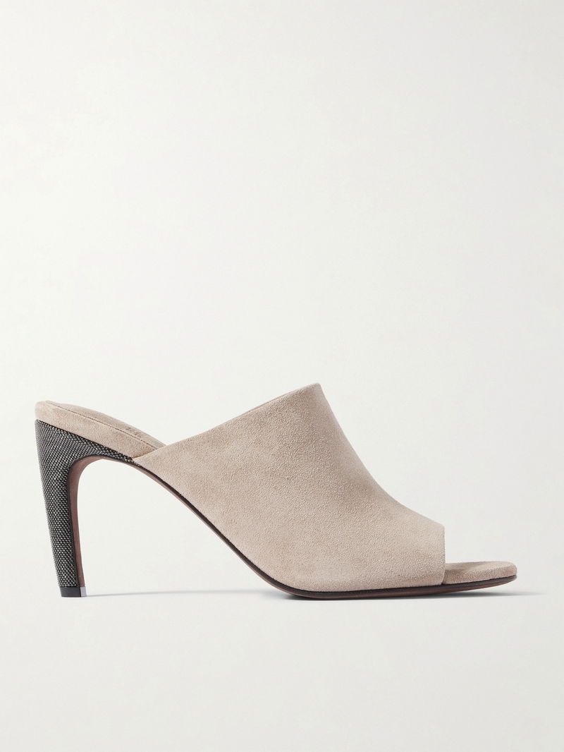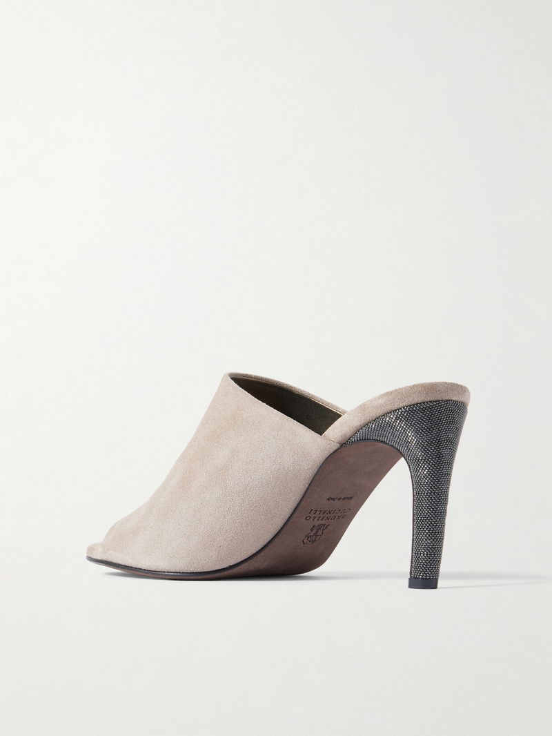 Expert cordwainers at Brunello Cucinelli's historic Italian workshop are responsible for the impeccable finish on these mules.