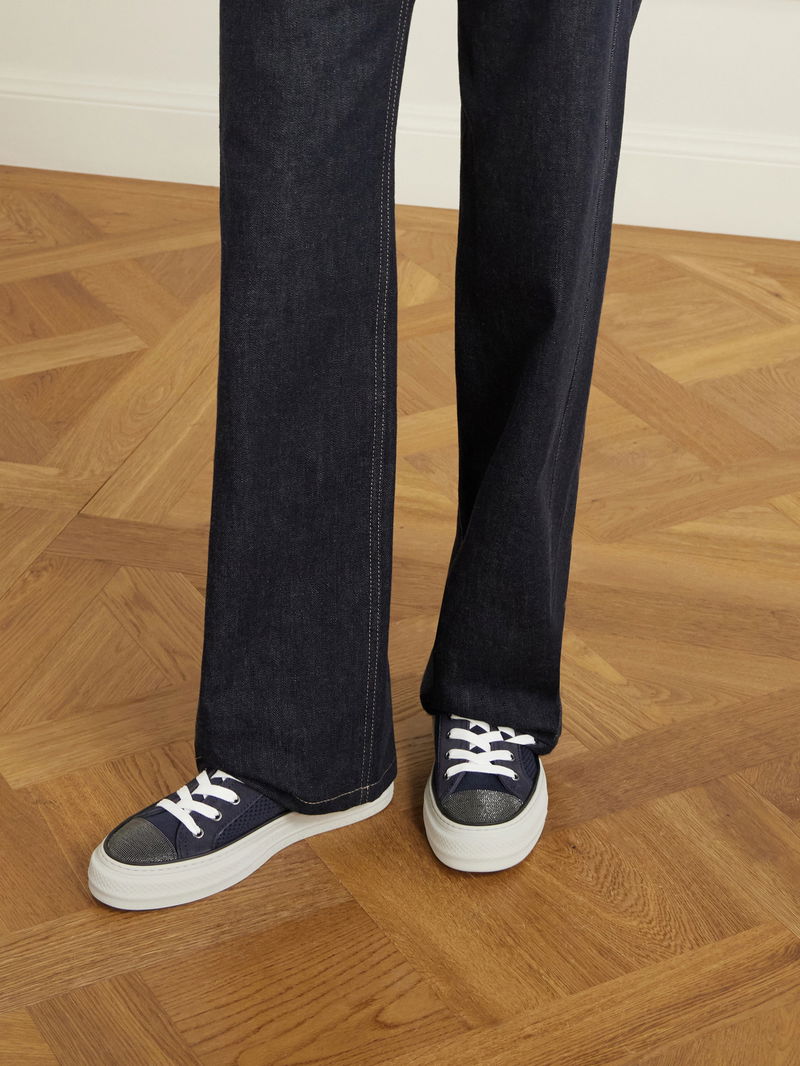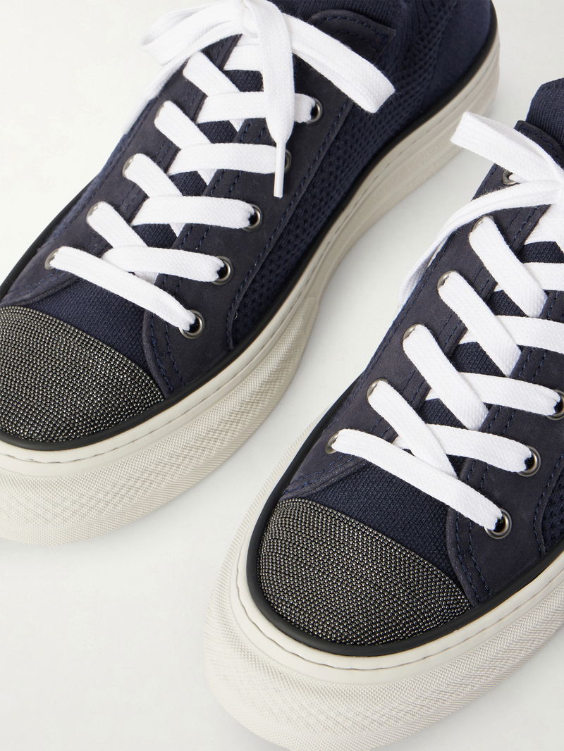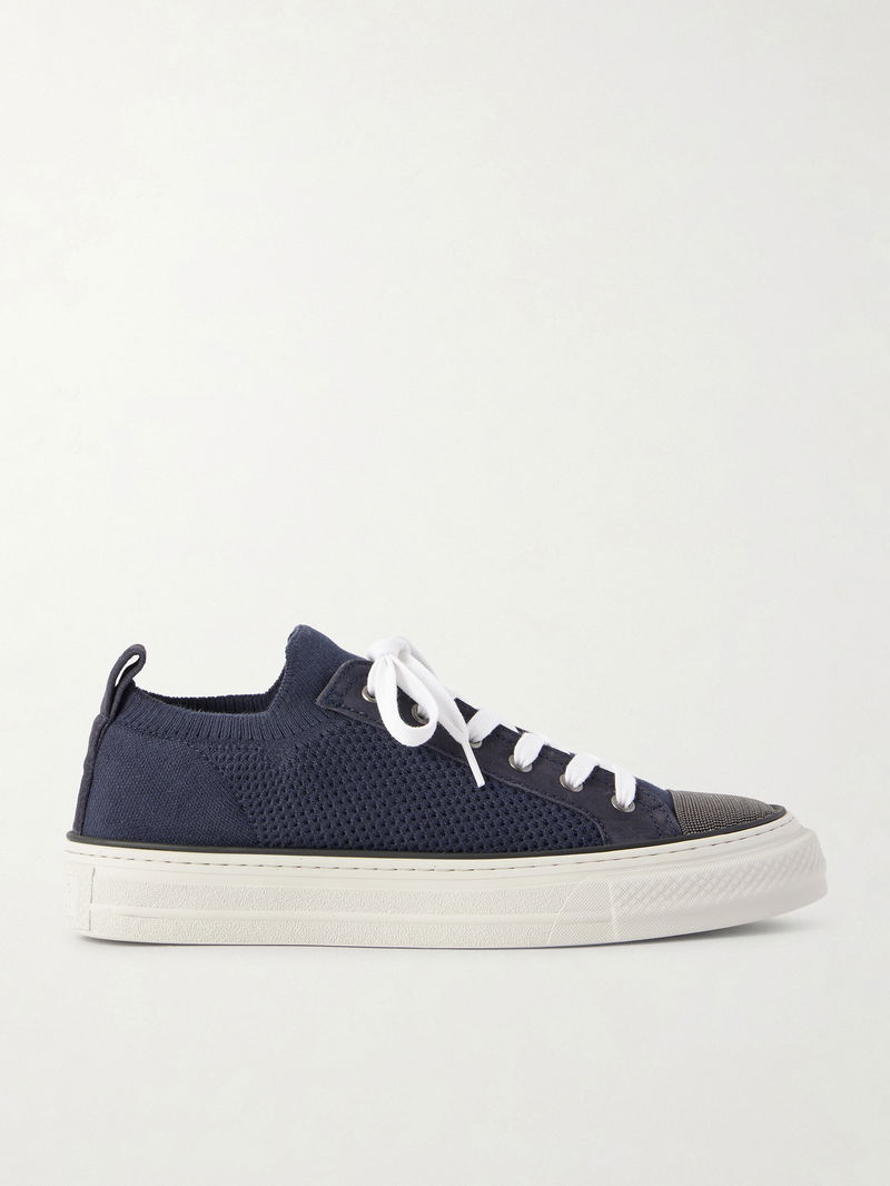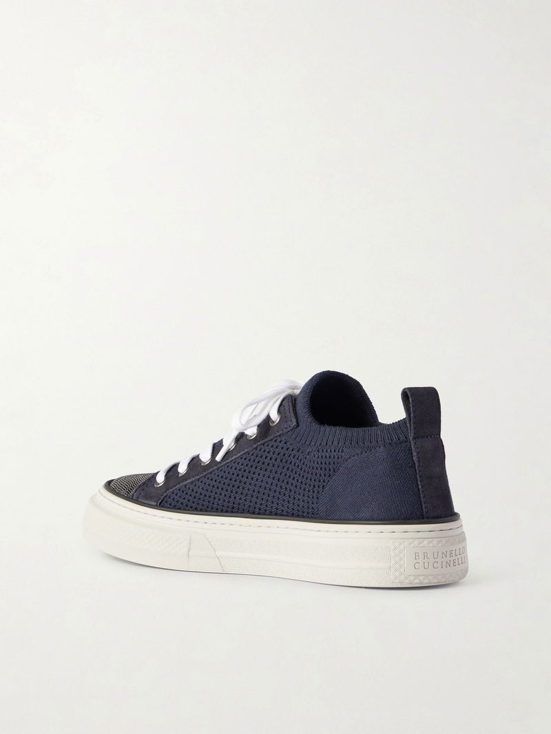 Bead-embellished Suede-trimmed Stretch-knit Sneakers