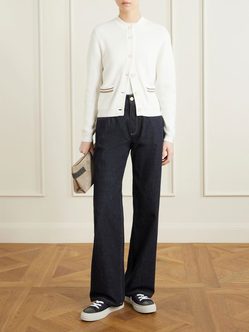 Brunello Cucinelli’s minimal basics and casual wear are elevated by luxury materials in sophisticated neutral tones and elegant details. From crisp cotton shirts, cashmere sweater dresses and leather blazers to puffer coats and suede and shearling bags, shoes and boots, pieces balance a relaxed aesthetic with a timeless quality.