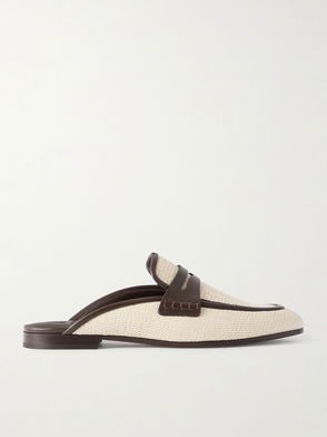 Brunello Cucinelli's mules are designed with overlapping straps detailed with the label's signature Monili beads.