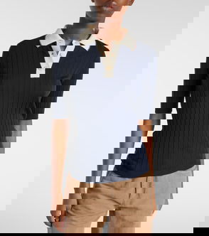 Cable-knit Cotton-blend Polo Sweater