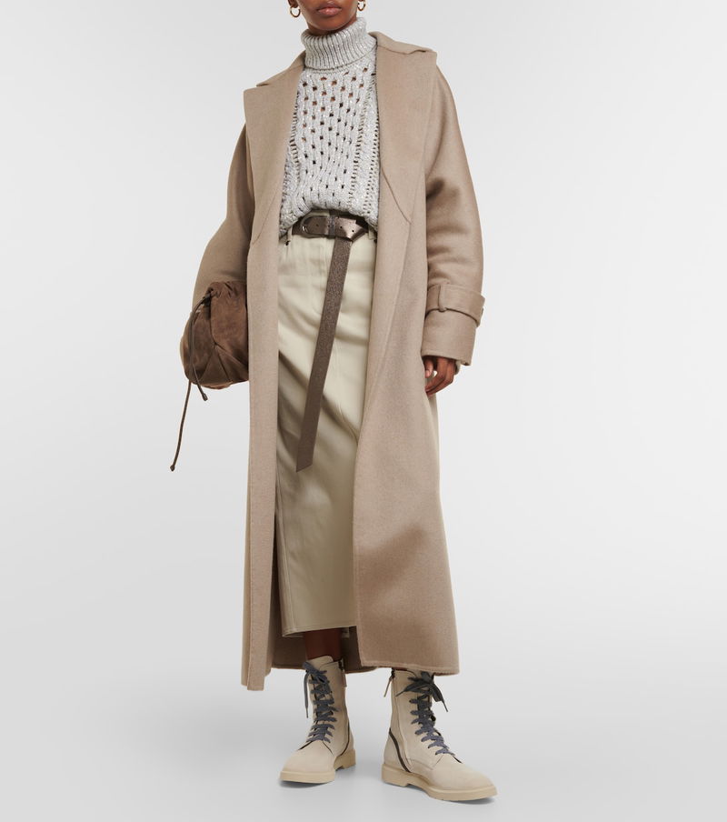 Brunello Cucinelli’s minimal basics and casual wear are elevated by luxury materials in sophisticated neutral tones and elegant details. From crisp cotton shirts, cashmere sweater dresses and leather blazers to puffer coats and suede and shearling bags, shoes and boots, pieces balance a relaxed aesthetic with a timeless quality.