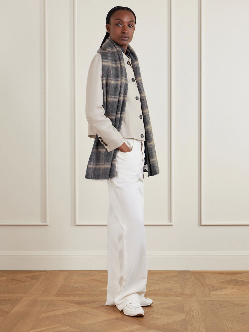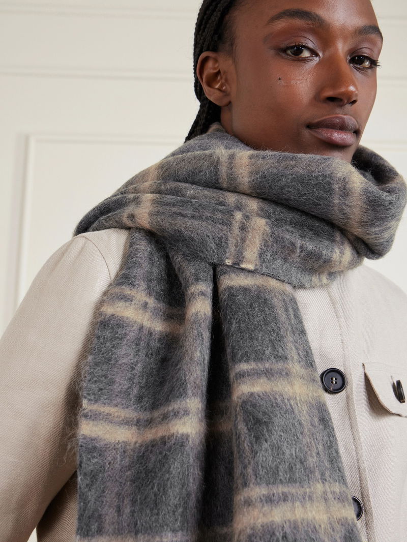 Brunello Cucinelli's brushed scarf is a great winter warmer. Knitted from a blend that contains touches of wool, mohair and cashmere, it's patterned with timeless checks that will pair with any neutral coat or jacket.