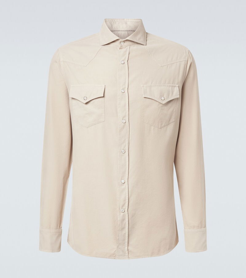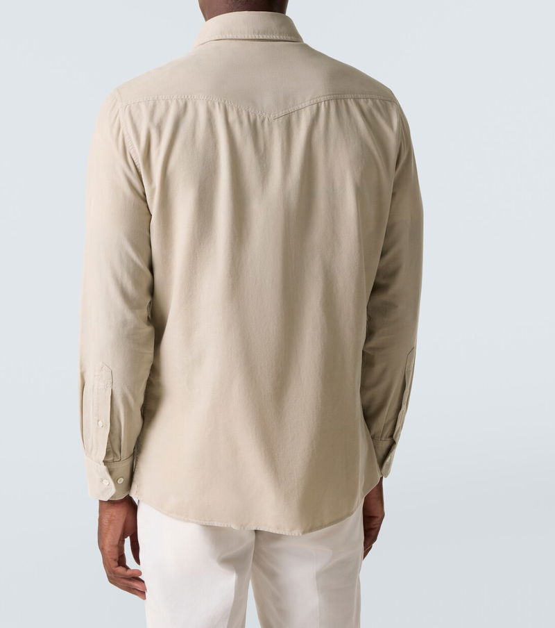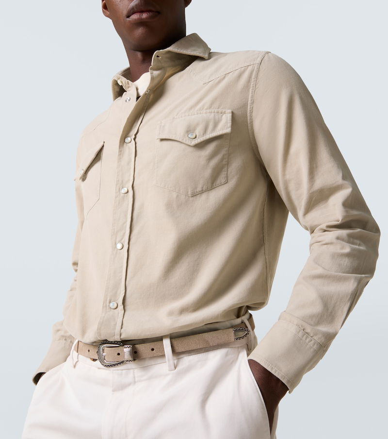Crafted in Italy from soft cotton corduroy, this Brunello Cucinelli shirt exudes casual elegance. Flap pockets, snap fasteners, and a shoulder yoke add a subtle Western flair to the design.