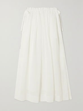 Brunello Cucinelli's collections are filled with timeless, versatile styles like this skirt. It's cut from smooth navy crepe and lightly skims the figure as it falls to a maxi length. Highlight the side slit by wearing yours with knee-boots.