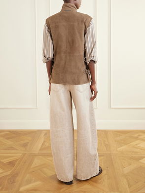 Description: Rooted in tradition and precision, Brunello Cucinelli’s collections reflect the best of Italian tailoring and design. This jacket is made from panels of velvety suede and has signature Monili beads tracing the base of the stand collar. The concealed placket creates a streamlined finish. - Net a Porter Materials: 100% suede (Lamb); lining: 74% acetate, 26% silk Product Code: 46376663162854391