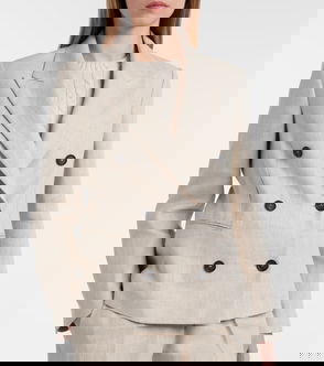 Brunello Cucinelli's blazer has been tailored in Italy from a luxurious blend of wool and silk-blend tweed. It has a smart double-breasted front, peak lapels and flap pockets. Wear it with the matching skirt.