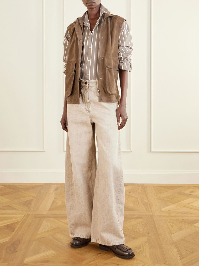 Brunello Cucinelli’s minimal basics and casual wear are elevated by luxury materials in sophisticated neutral tones and elegant details. From crisp cotton shirts, cashmere sweater dresses and leather blazers to puffer coats and suede and shearling bags, shoes and boots, pieces balance a relaxed aesthetic with a timeless quality.