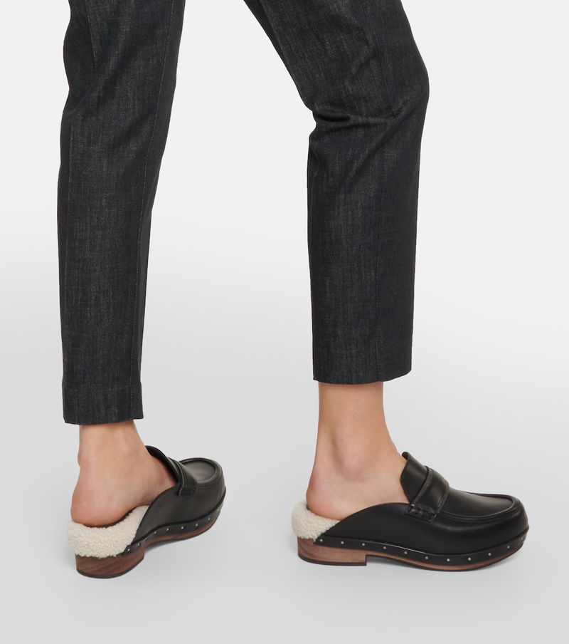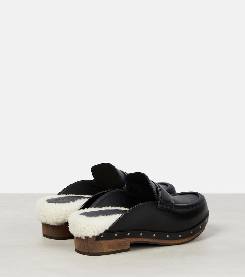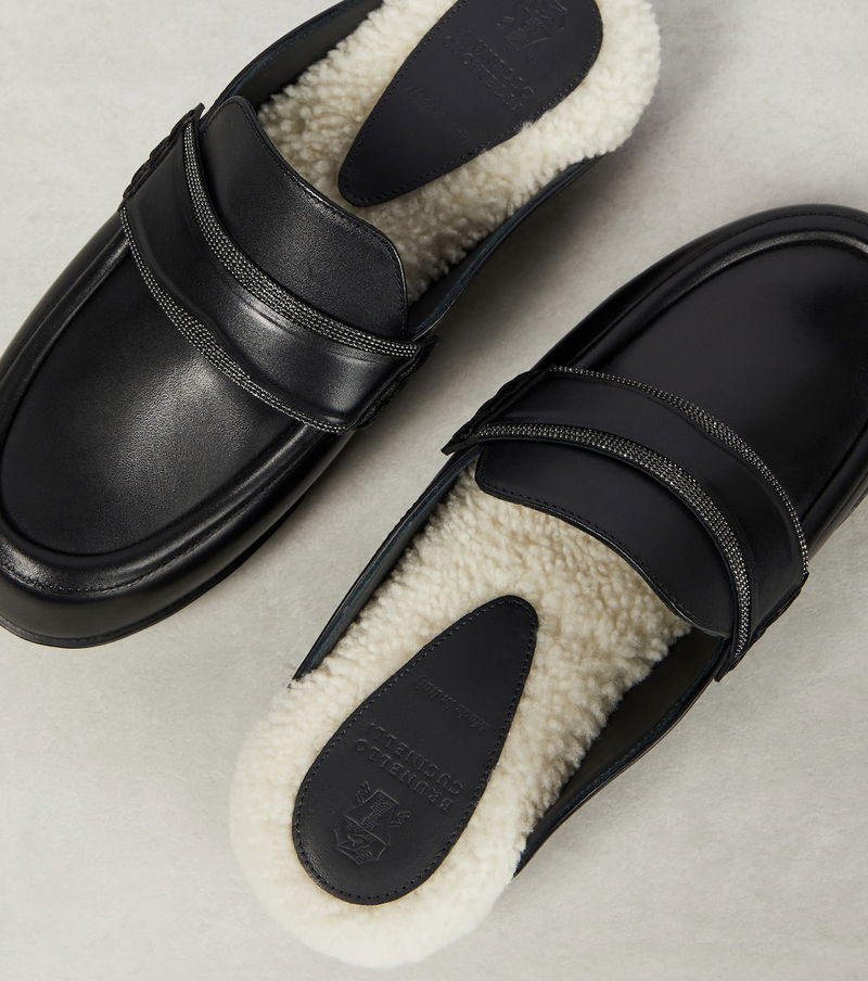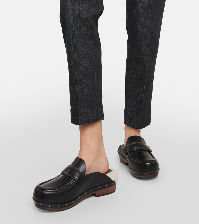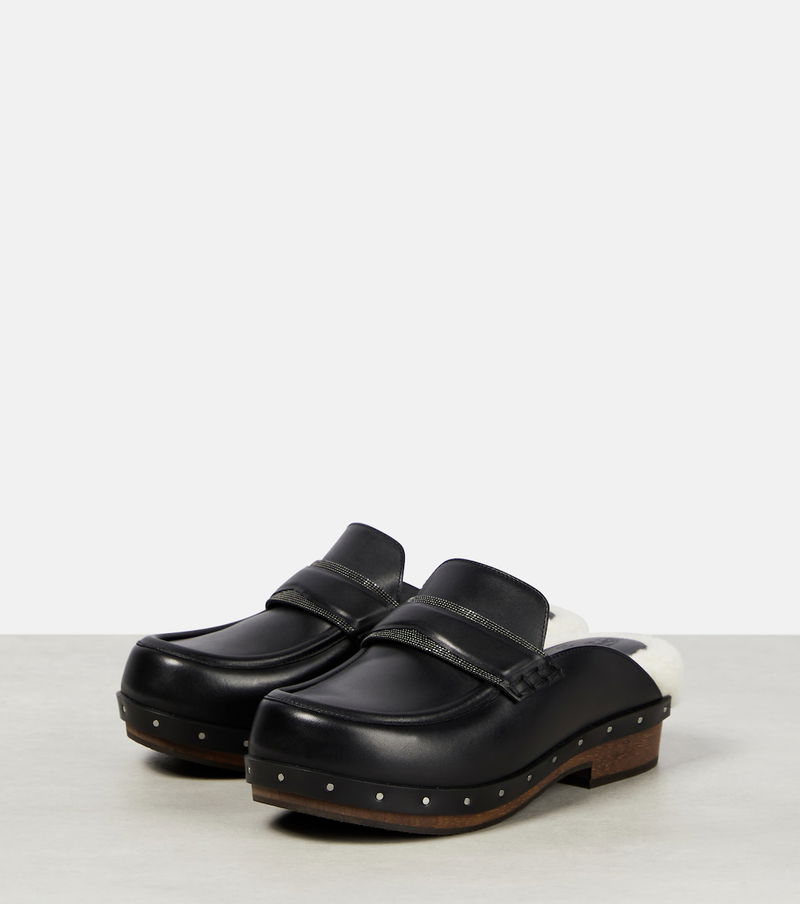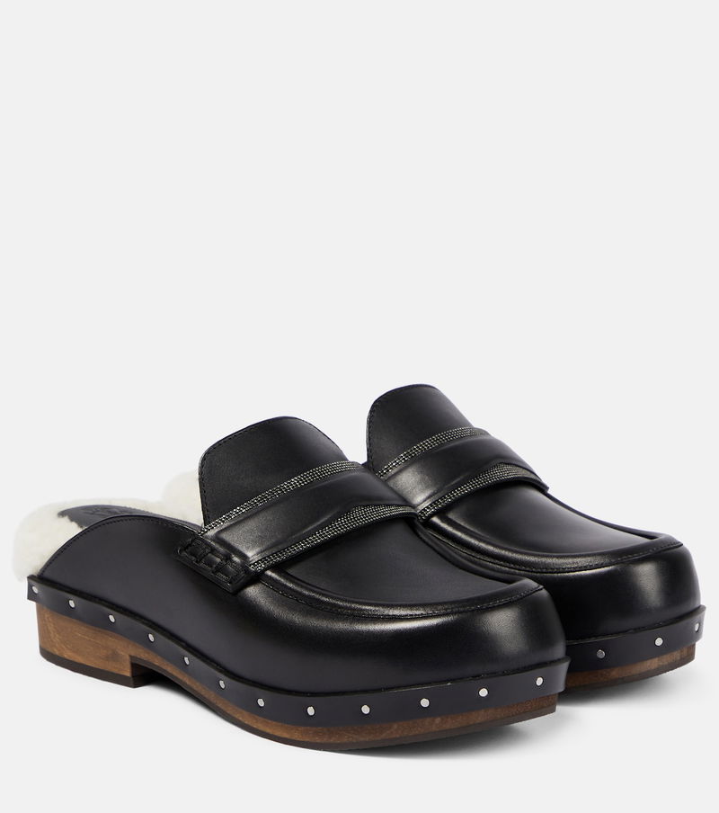 These clogs from Brunello Cucinelli are crafted from leather and trimmed with tactile shearling. A Brunello Cucinelli signature, the monili beading is made from nickel-free brass that's faceted to create a sparkling effect and hand-applied to each item.
