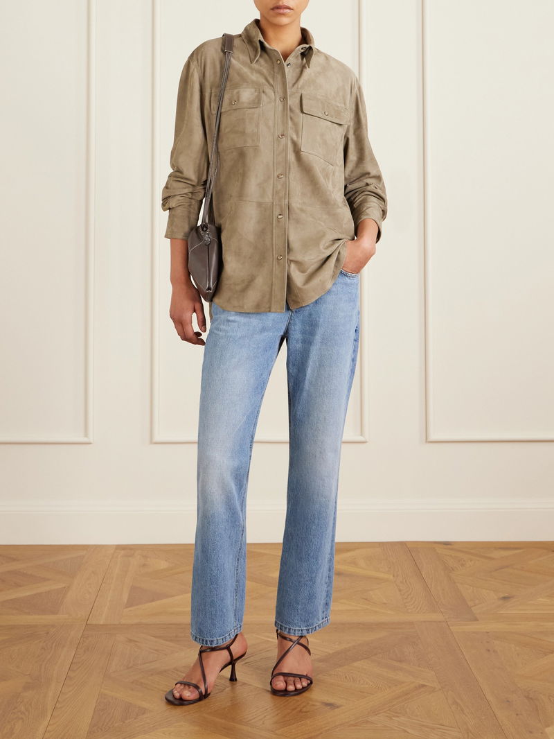 Brunello Cucinelli’s minimal basics and casual wear are elevated by luxury materials in sophisticated neutral tones and elegant details. From crisp cotton shirts, cashmere sweater dresses and leather blazers to puffer coats and suede and shearling bags, shoes and boots, pieces balance a relaxed aesthetic with a timeless quality.