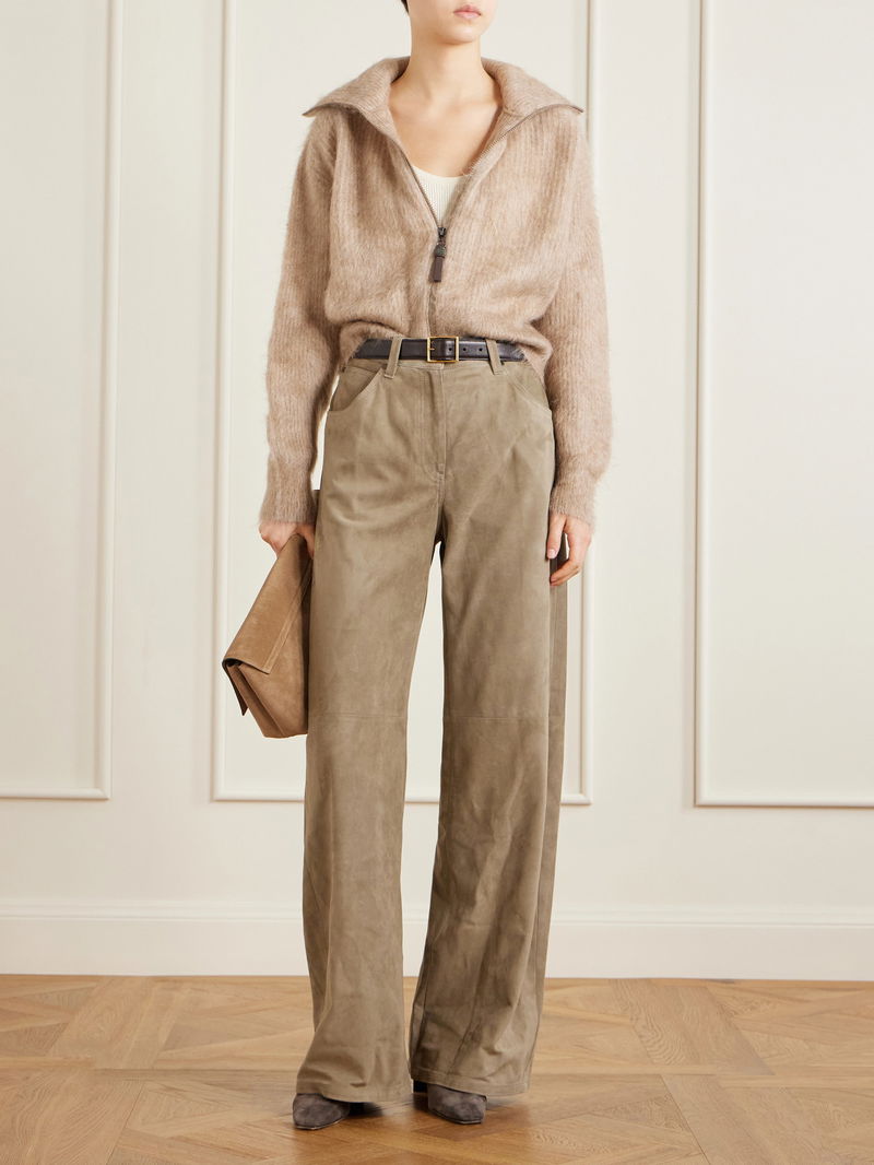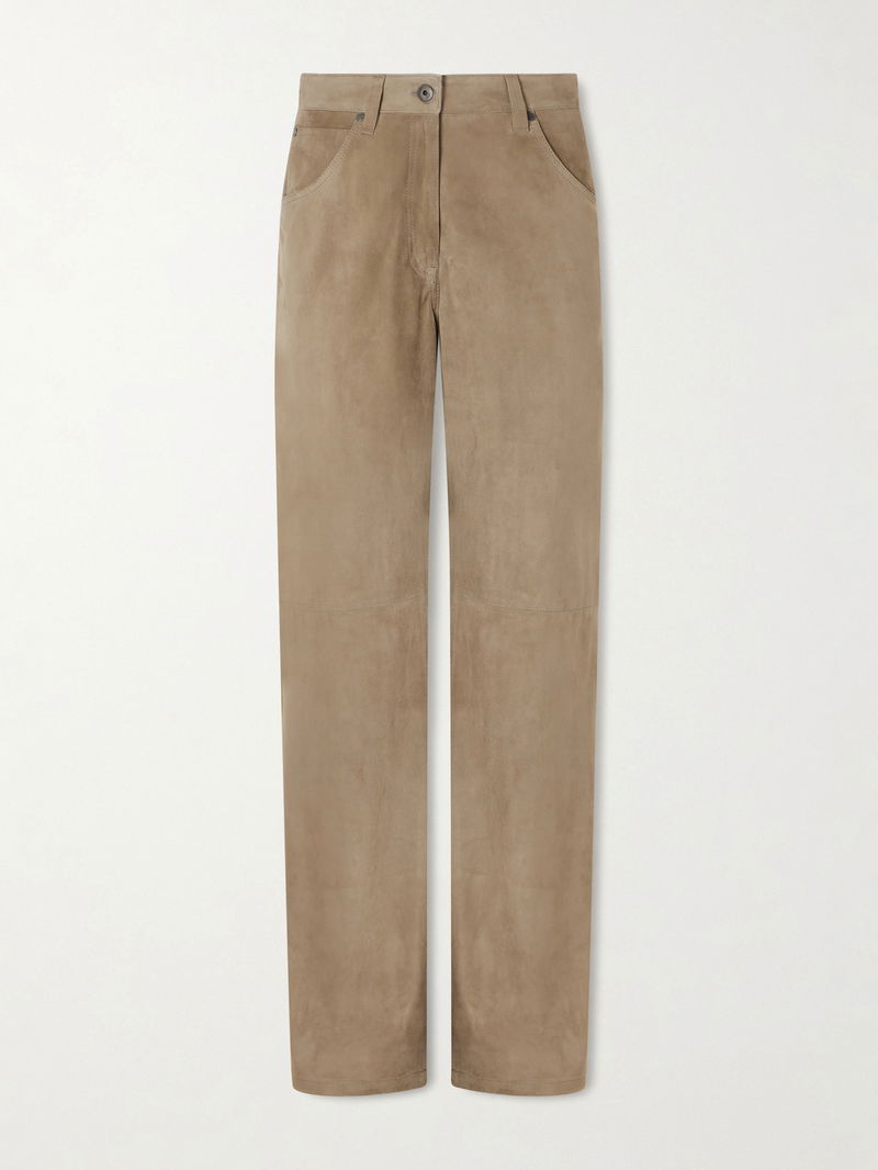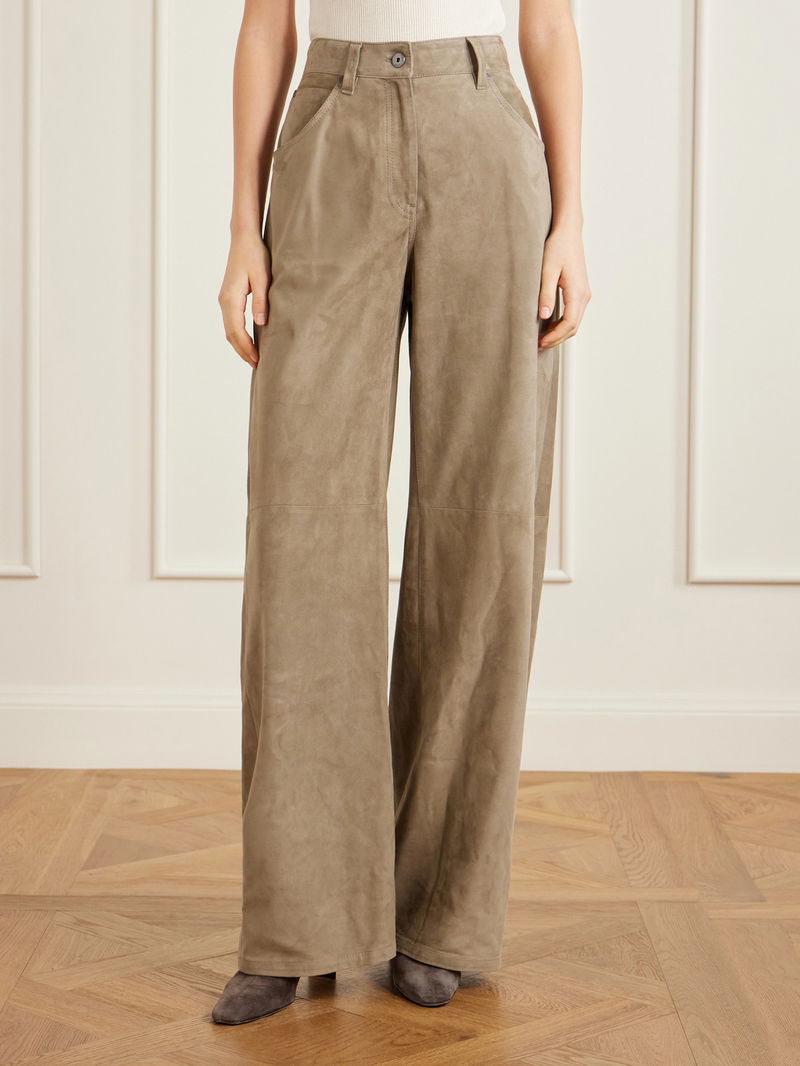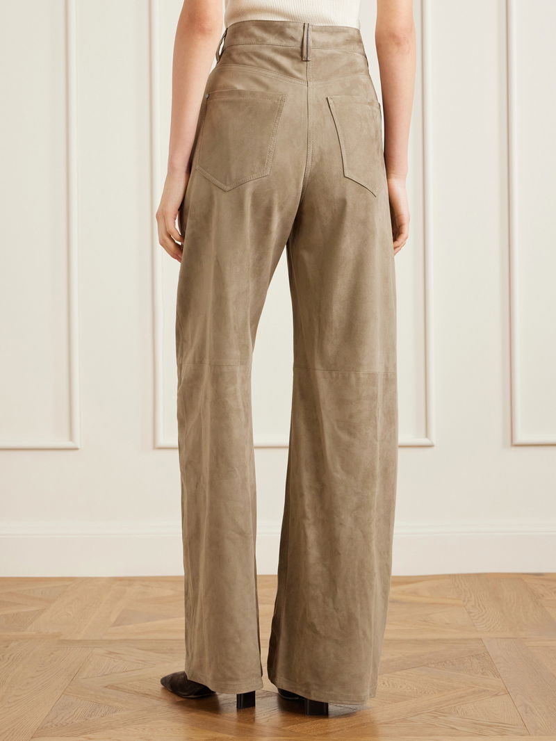 Brunello Cucinelli's pants will elevate any outfit. Made from panels of supple suede, they have a high-rise and wide legs with floor-skimming cuffs.