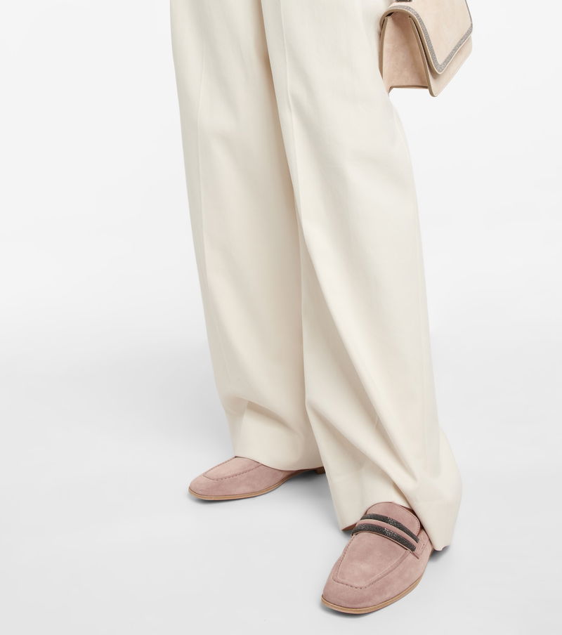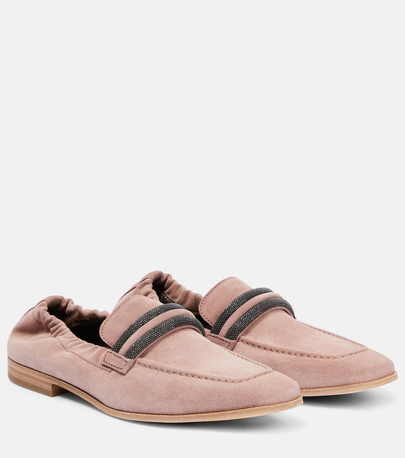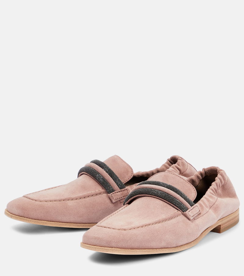 These pointed loafers align with Brunello Cucinelli's sophisticated aesthetic. Pared-back yet suitably polished, they're made from pink suede with monili bead-embellished vamps.
