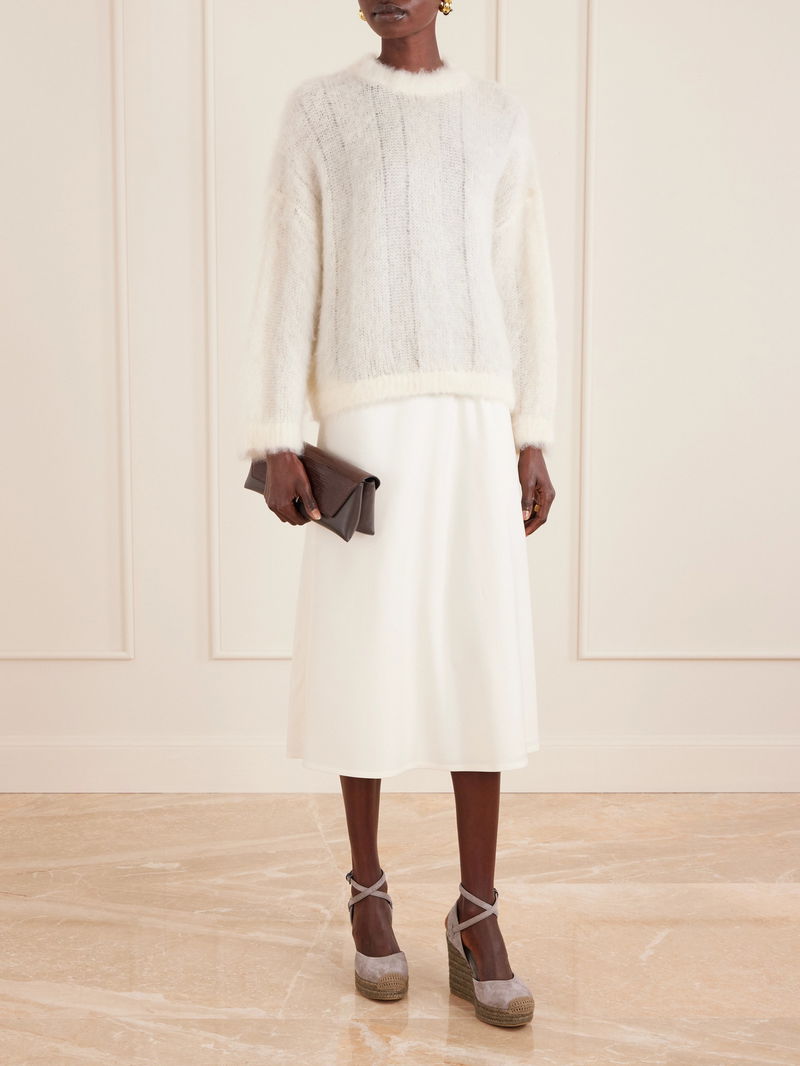Brunello Cucinelli's espadrilles are detailed with the label's signature Monili beads on the ankle strap.