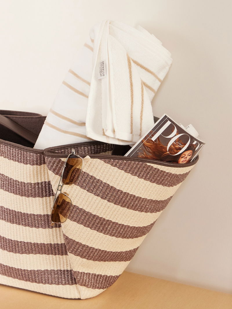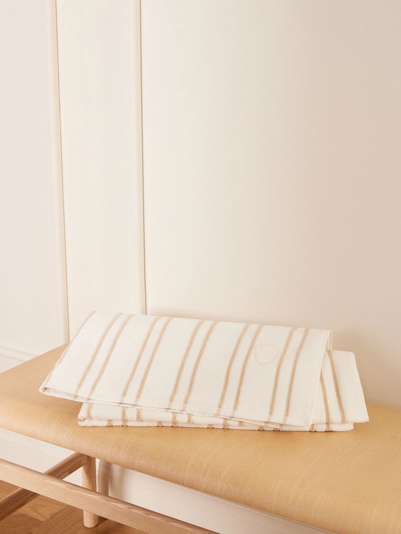 Bring a touch of refinement to your sun lounger with Brunello Cucinelli's beach towel. It's been made in Italy from soft cotton terrycloth, with logo embroidery that subtly coordinates with the stripes.